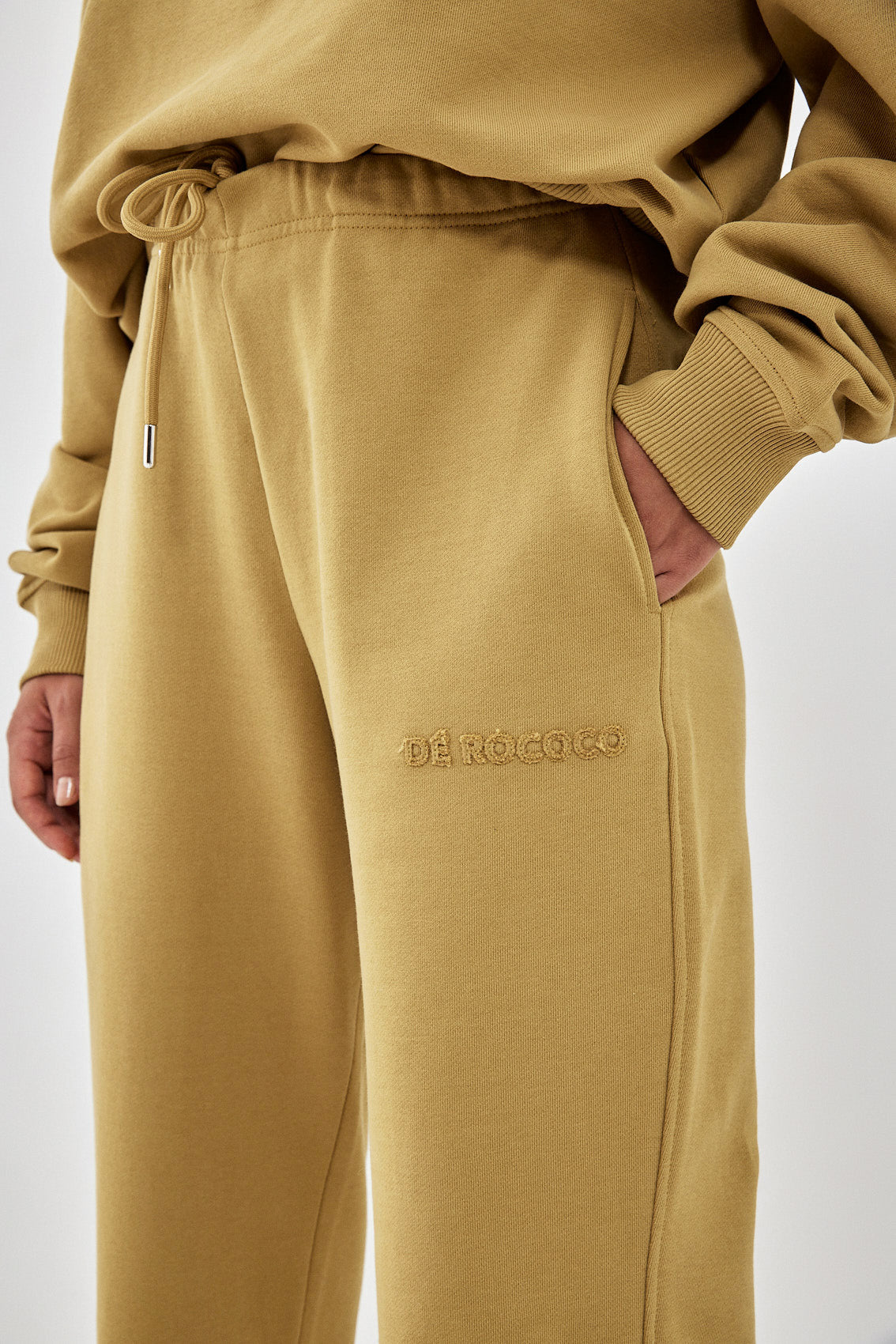 The ultimate cozy jogger. Featuring a tonal patch print below the side pocket. Two side pockets. Drawstring closure. Elastic cuff ribbed finish. Style it with the matching patch print mockneck sweatshirt and pair of sneakers for a sporty chic look.