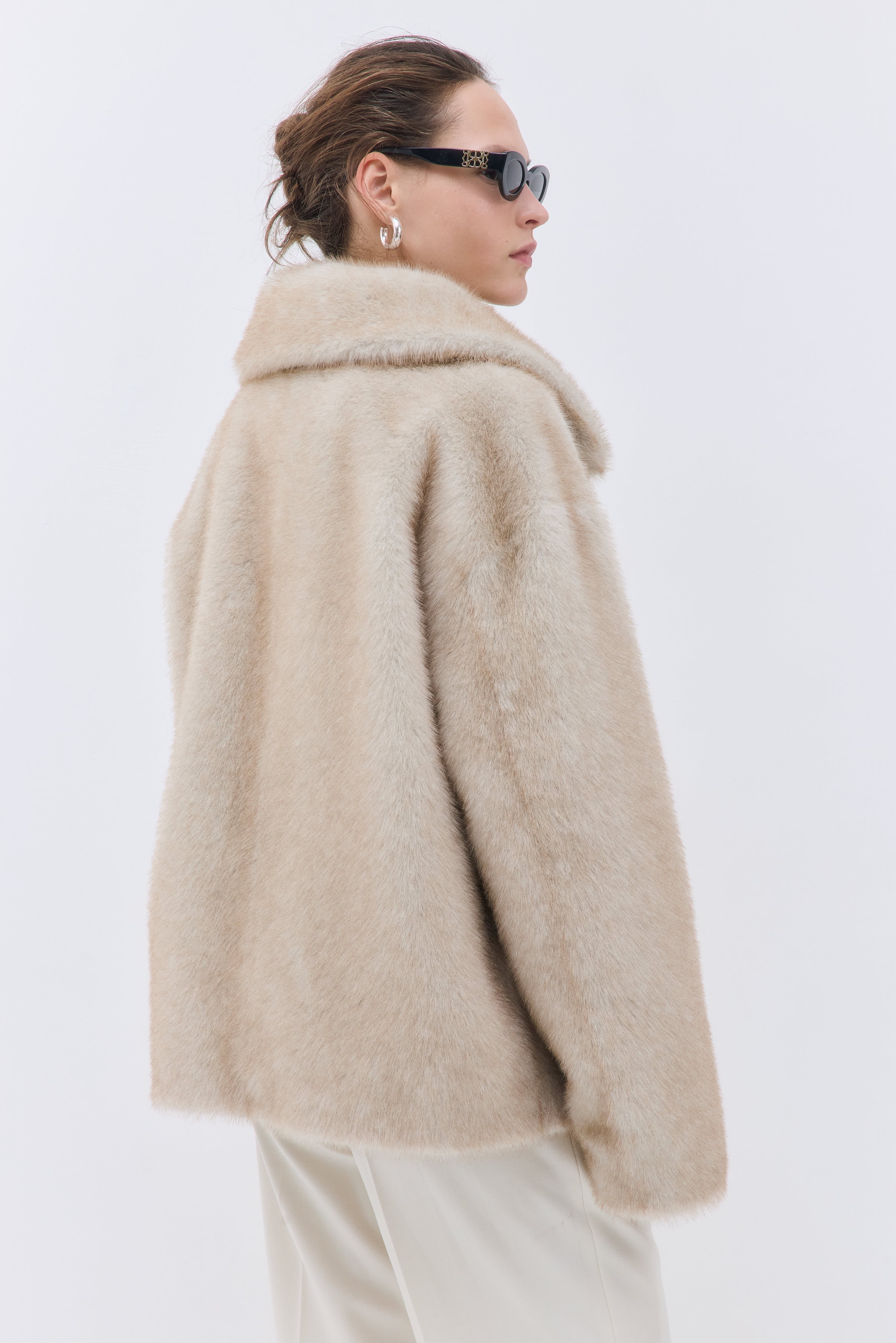Crafted in a specialized fur atelier using fine-quality faux fur, designed to hold its shape, texture, and softness over time.