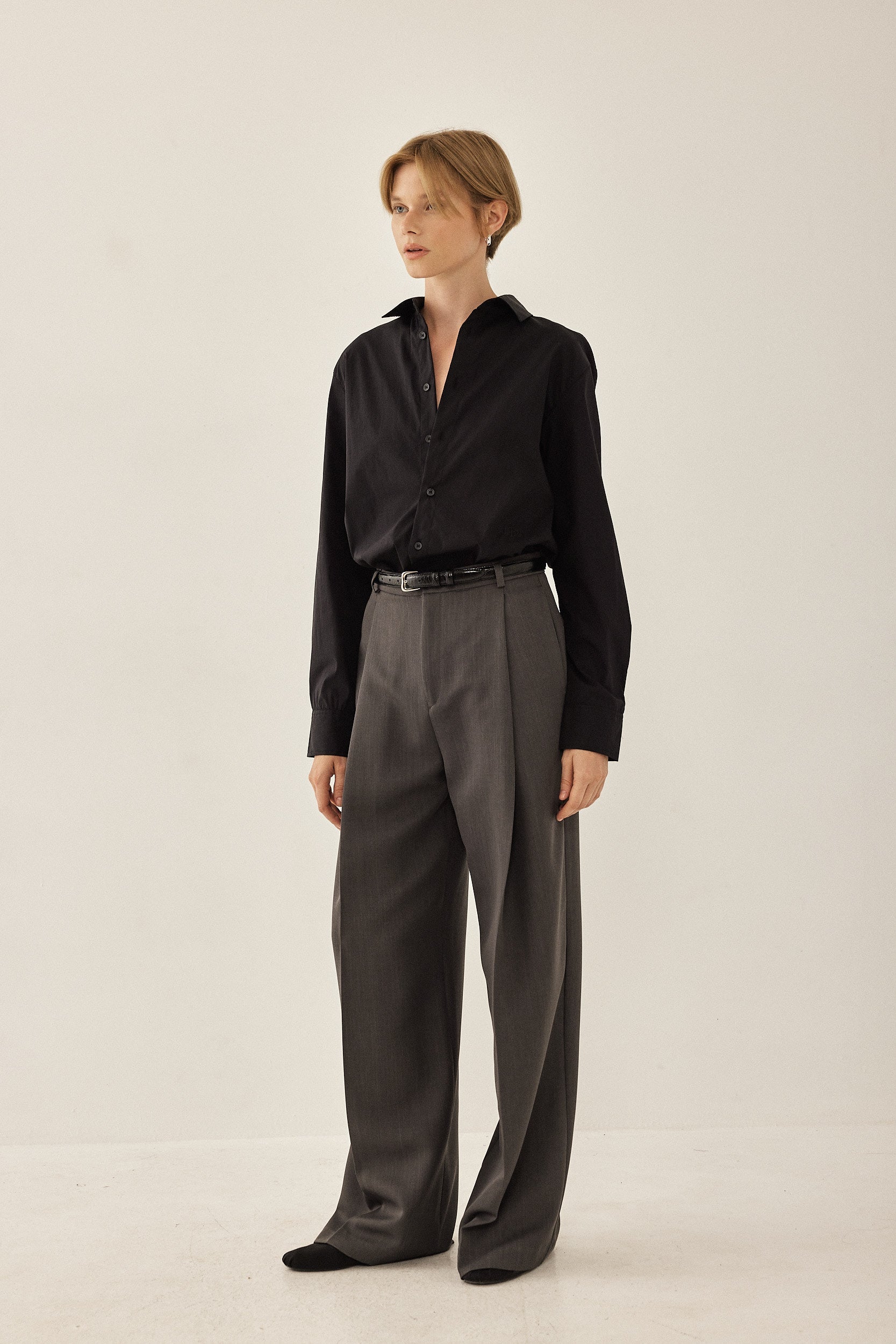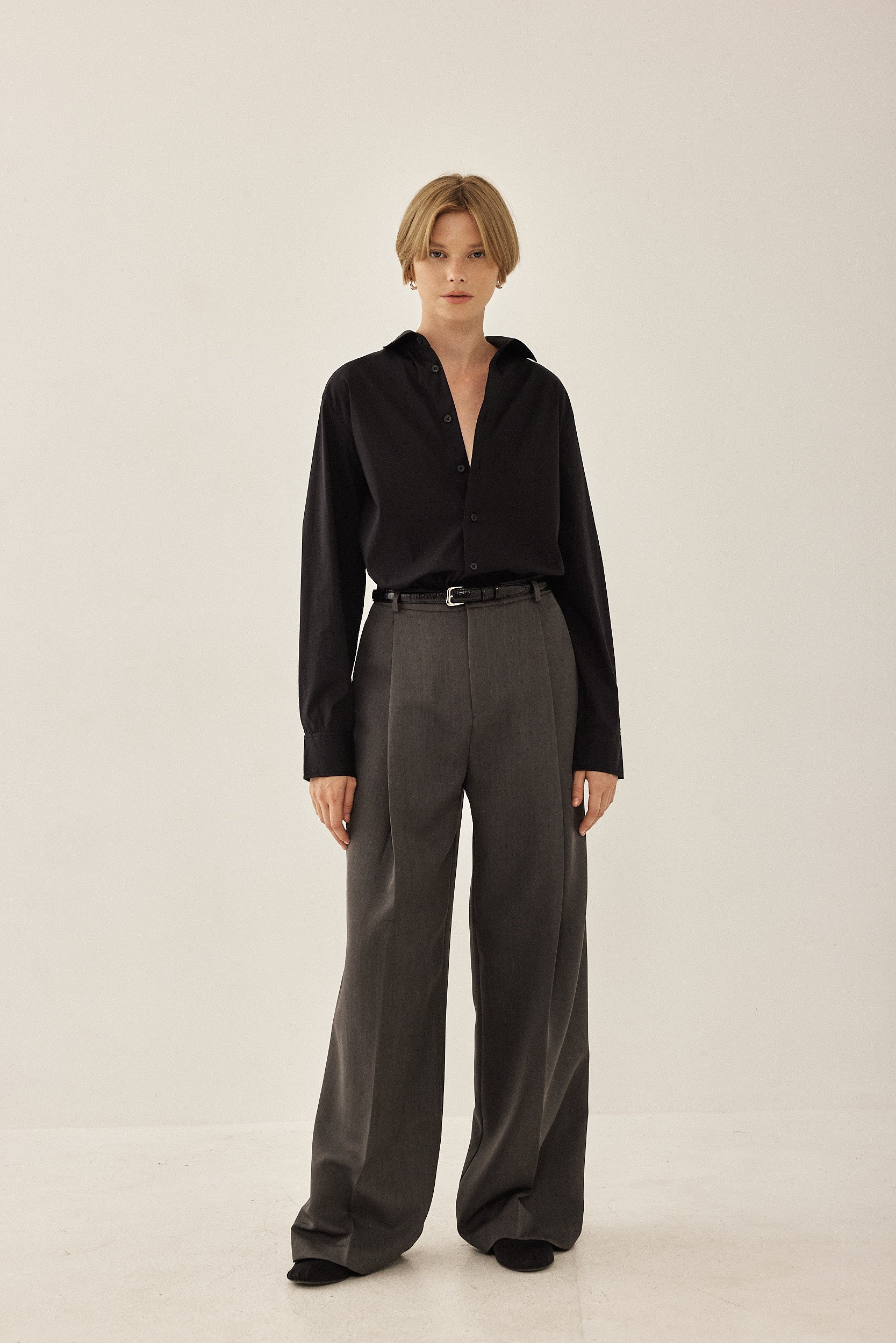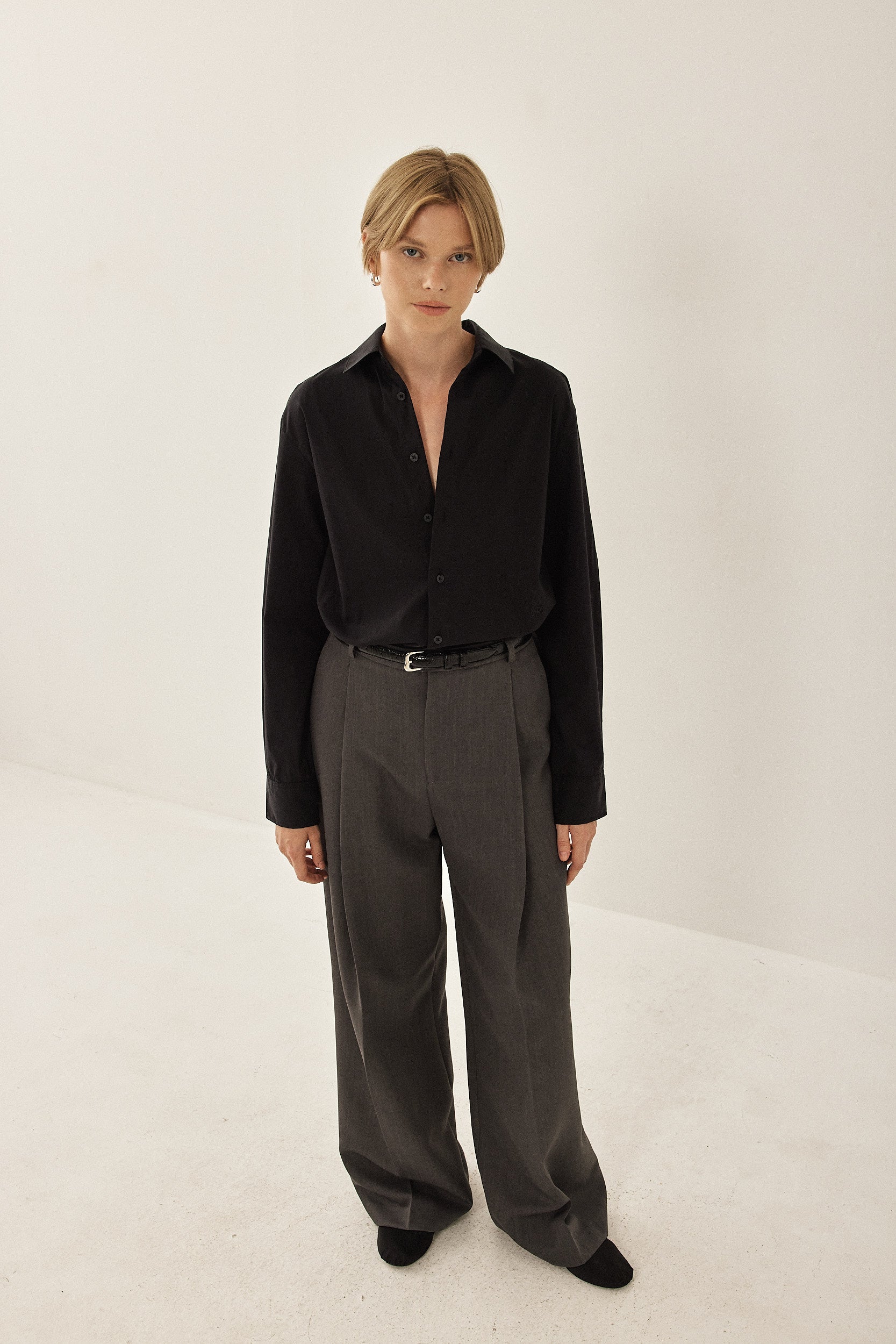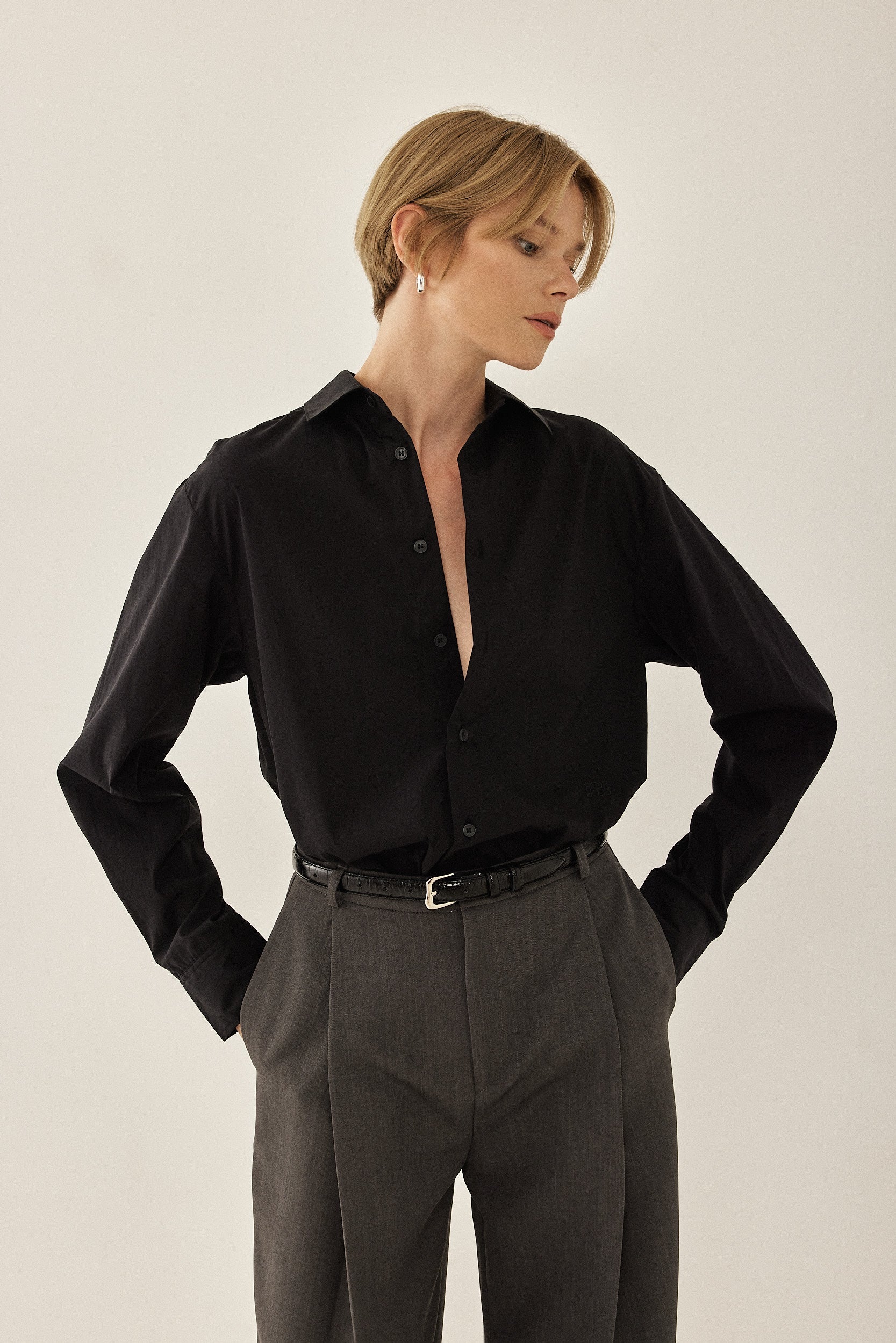 Your new go to button down shirt. Classic fit with a frontal button closure. Delicate slit on the side of the shirt and button details on the sleeve with a slightly accentuated collar. Crispy, ultra-flattering fabric. Style it with the matching pants or shorts for your new go to everyday look.
