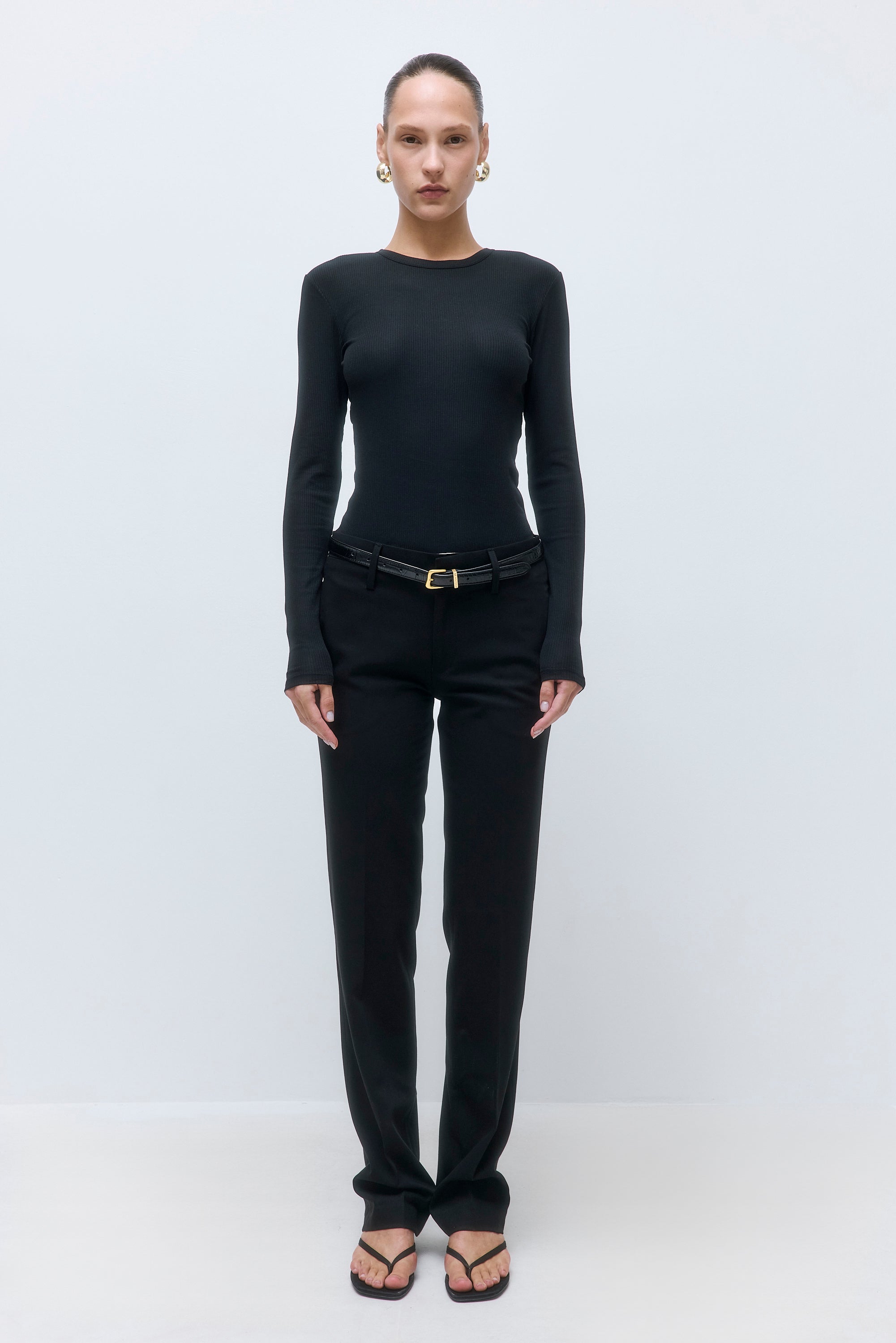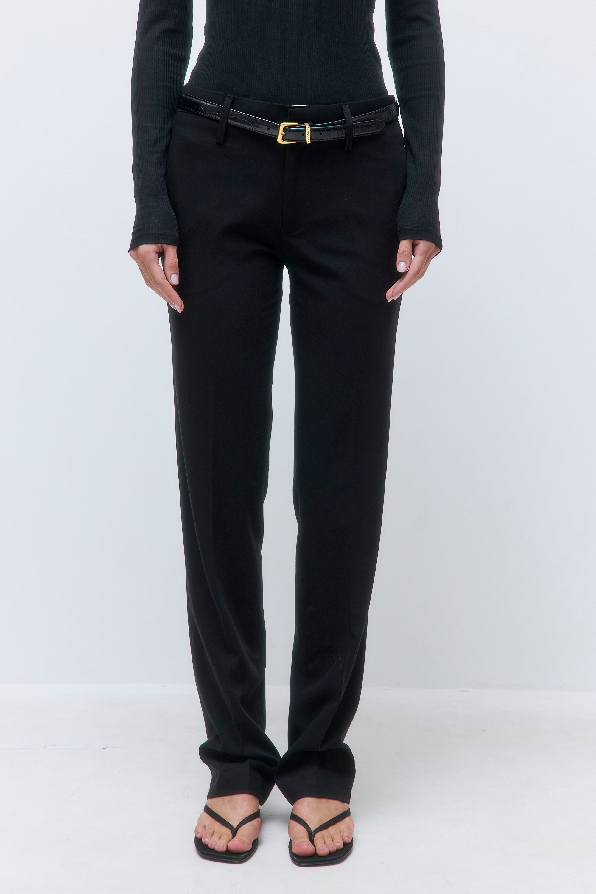 Welcoming new, timeless pieces to our iconic Daddy collection. The ultimate day-to-night pant. Mid waist, slim fit pants. Full length. Two side pockets. Zipper closure with inner hook. Half-lined. Tonal embroidered logo on the back. Includes back pockets featuring tonal buttons. Style it with our luscious Classic Long Sleeve T Shirt and our sleek new Double Breasted Daddy Blazer for a sophisticated, yet comfortable look.