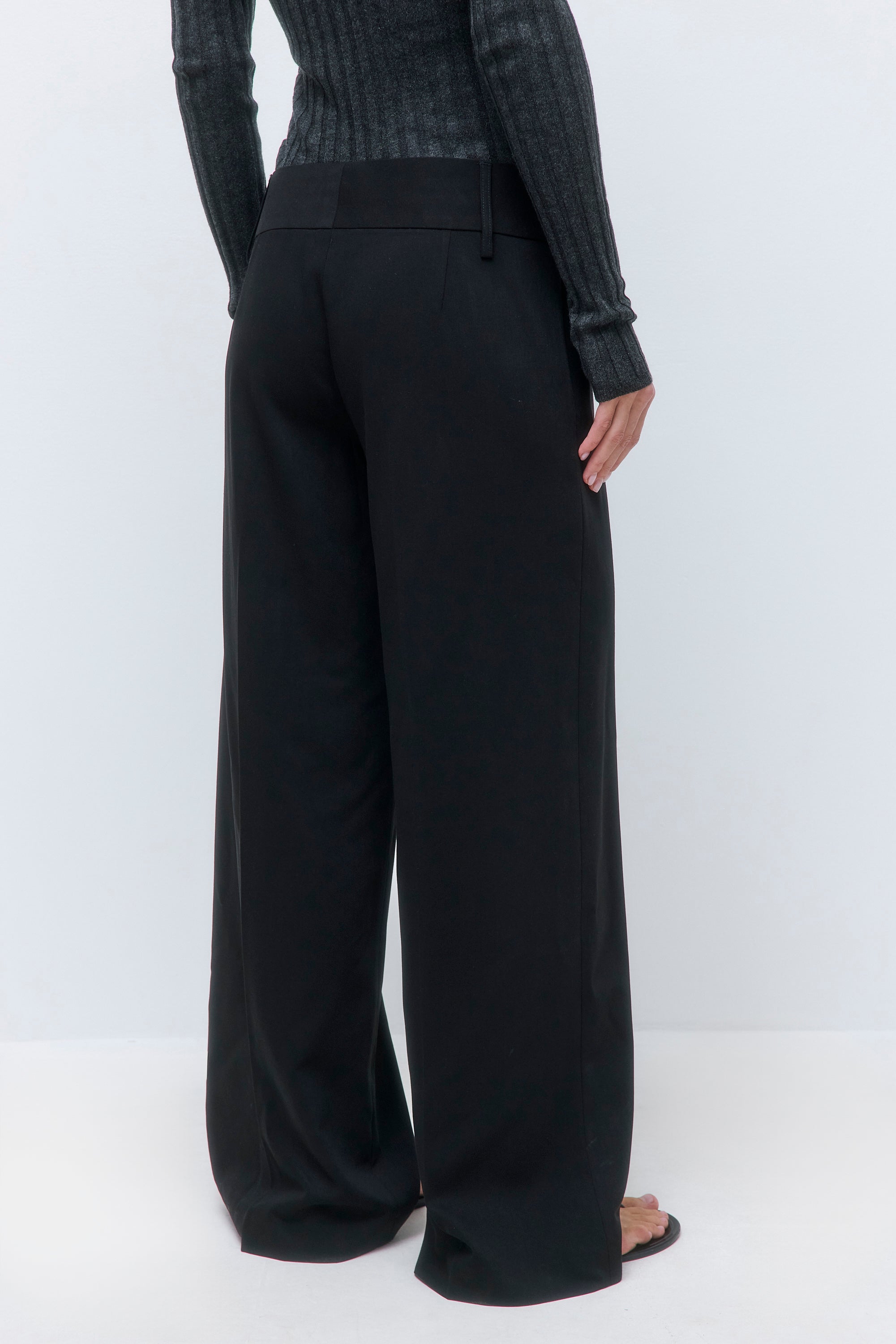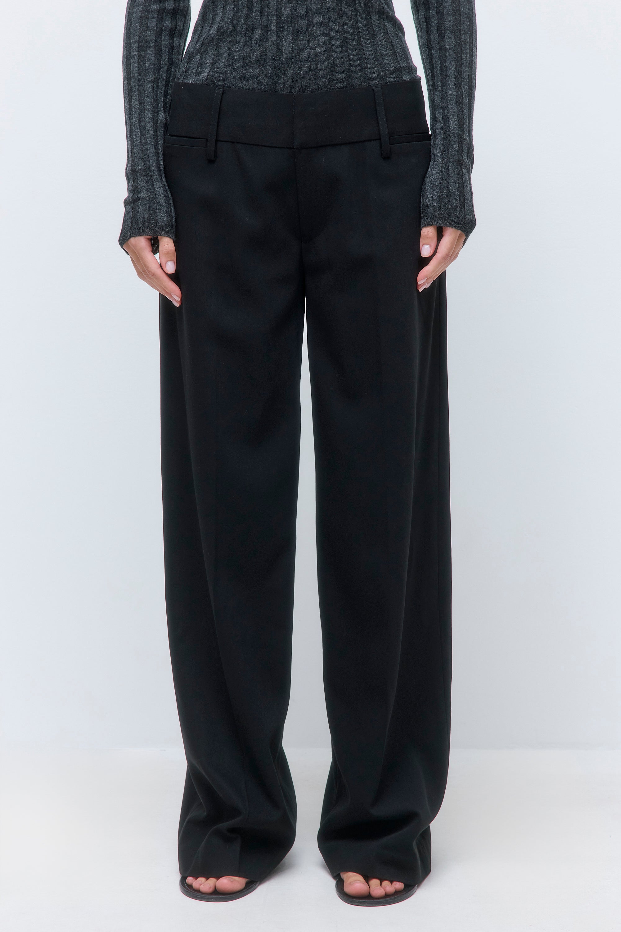 Welcoming new, timeless pieces to our iconic Daddy collection. The perfect pair you didn’t know you needed. Low rise, wide-leg pants. Clean hem. Detailed with two cut-out front pockets. Featuring a wide belt with extended belt loops. Zipper closure. Style it with our effortless Classic Long Sleeve T Shirt and our iconic Mini Yvon Purse for a refined and elevated look.