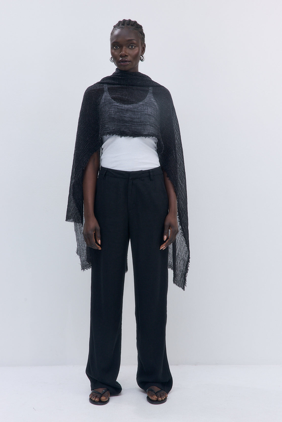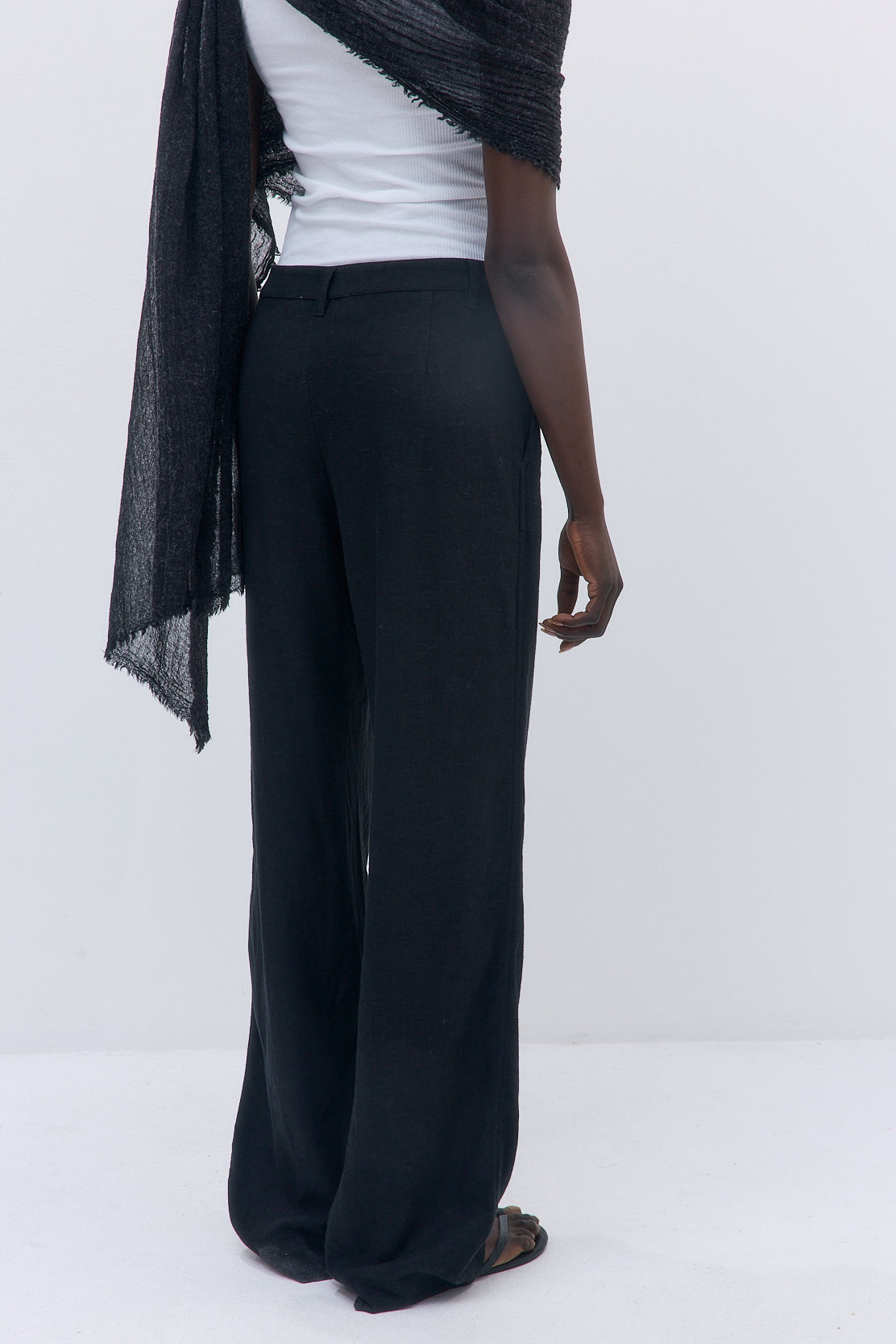 A modern take on classic tailoring, designed for effortless everyday wear. Mid rise Linen Pants made from a semi-sheer fabric. Relaxed fit. Featuring two side pockets. Clean finishes. Detailed with an internal hook-and-zip closure and a subtle tonal embroidered logo below the pocket. Style it with our new and iconic Semi Sheer Deep Scoop Tank, and pair those with our luxurious Jane Sunglasses for an easy, elevated look with a modern feel.