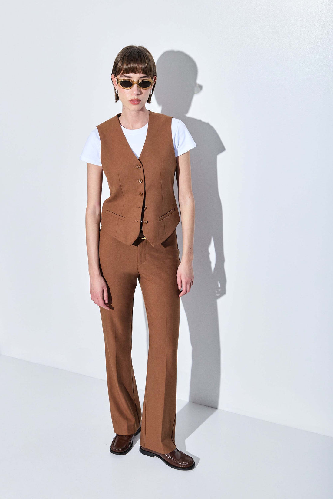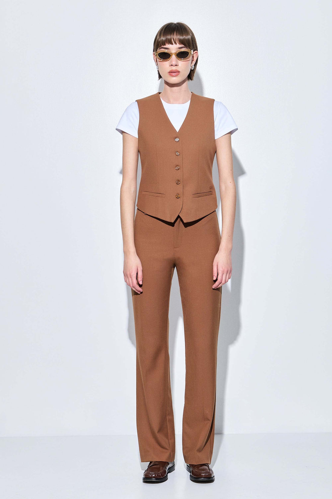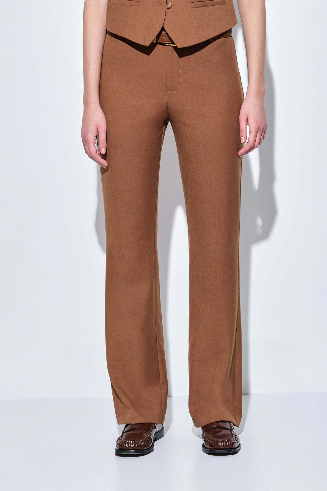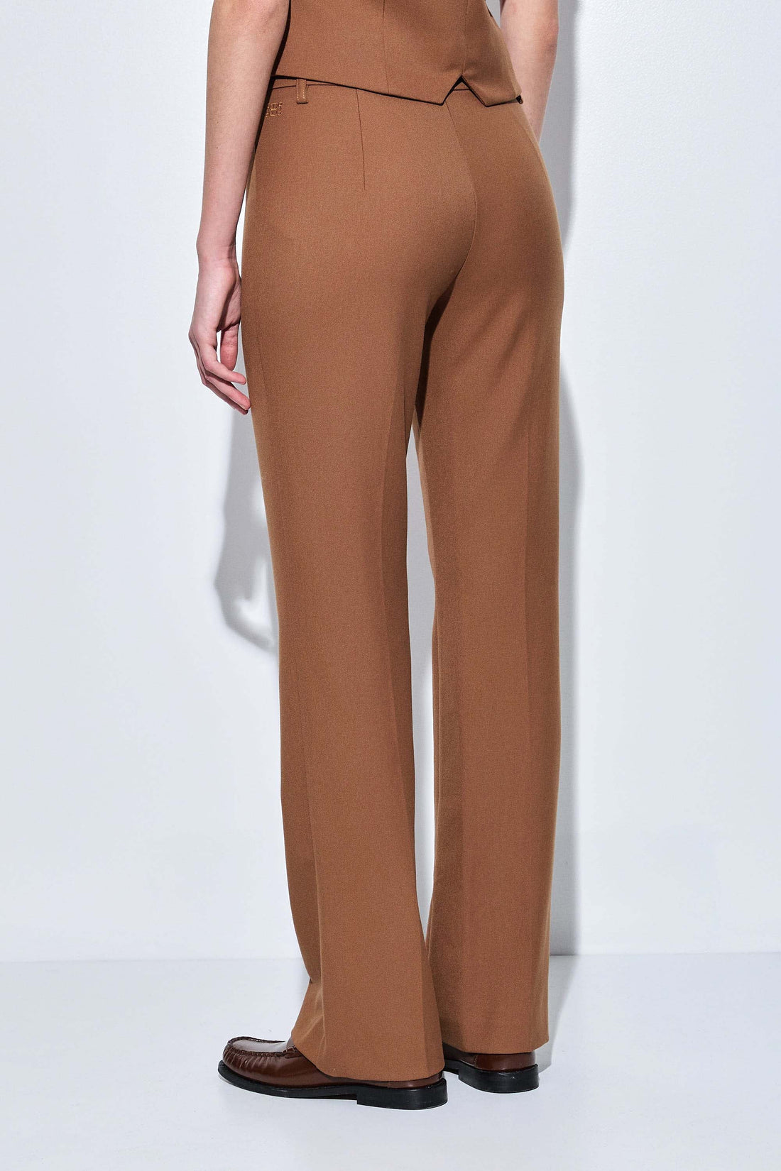 Our new bootcut daddy pants are your new go-to bottoms in a new luxurious tailored fabric. Mid waisted. Bootcut fitted silhouette. Front zipper and metal hook closure. Unlined. Belt loops. Full length. Tonal embroidered logo on the back. Style it with our tailored daddy vest and throw our tailored daddy blazer on top for a classy and chic look.