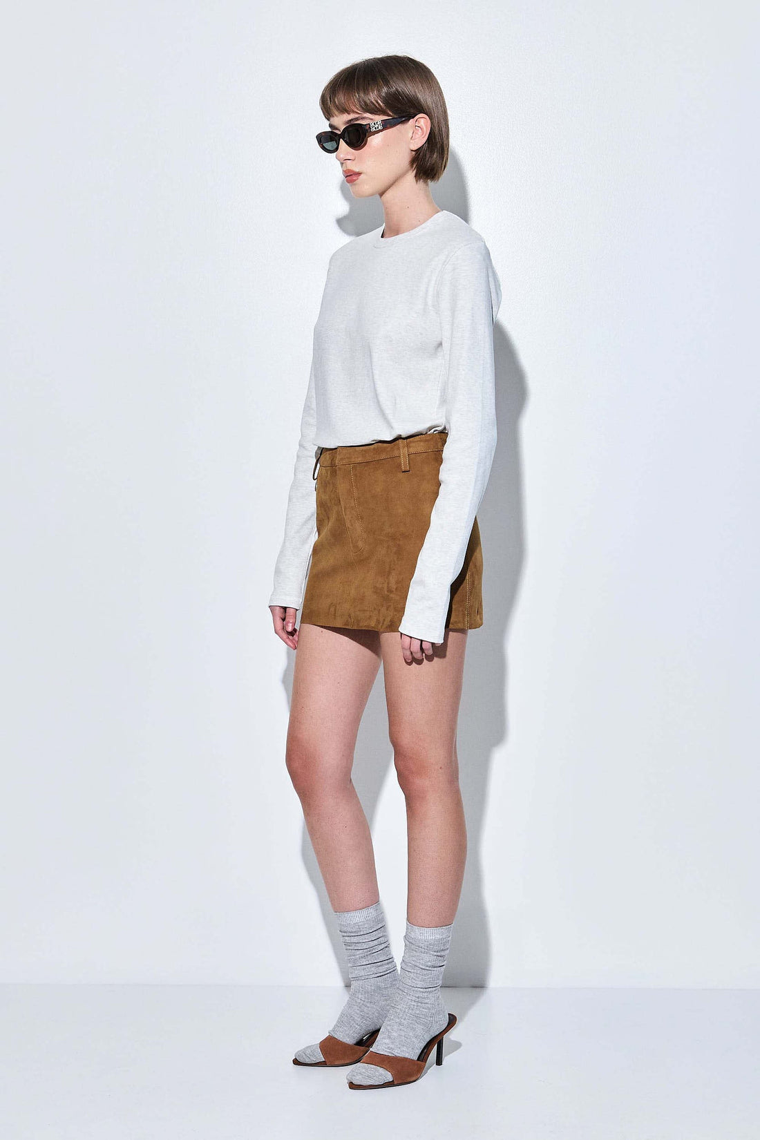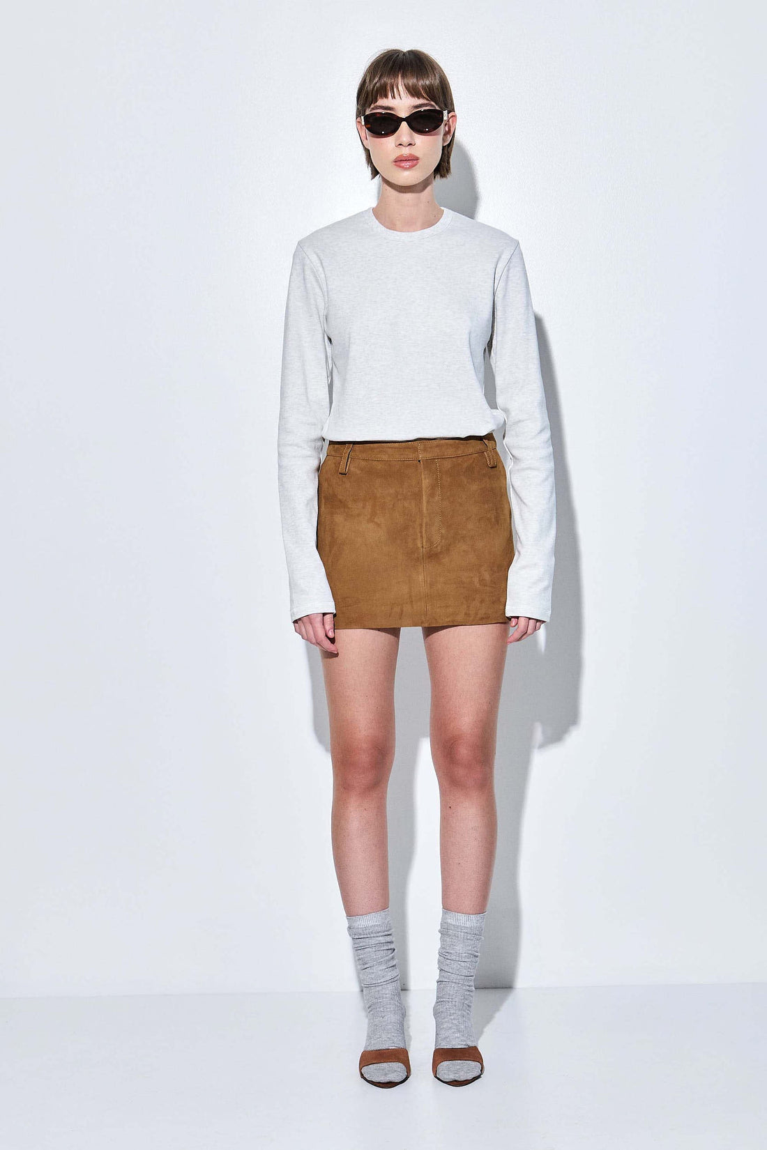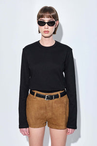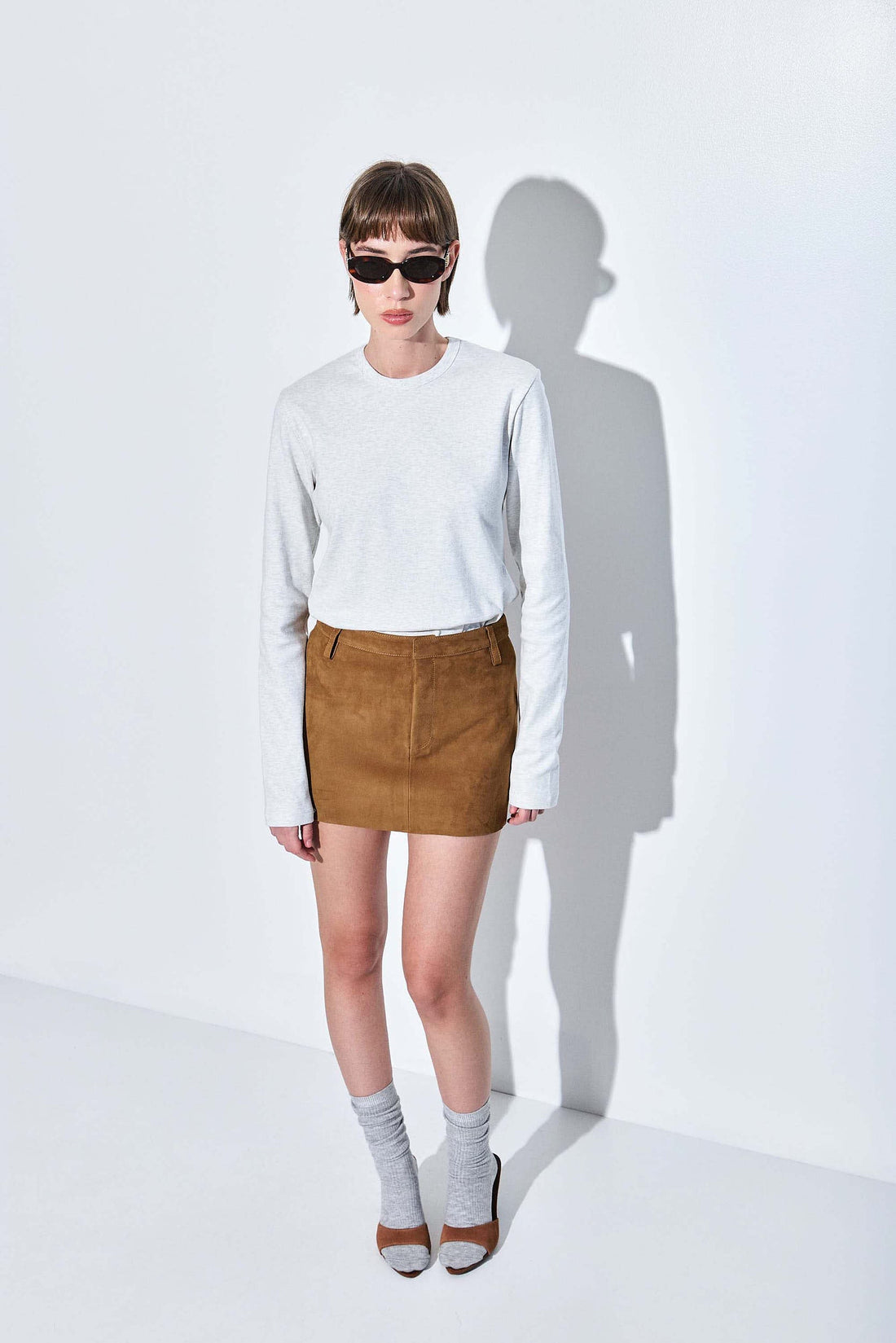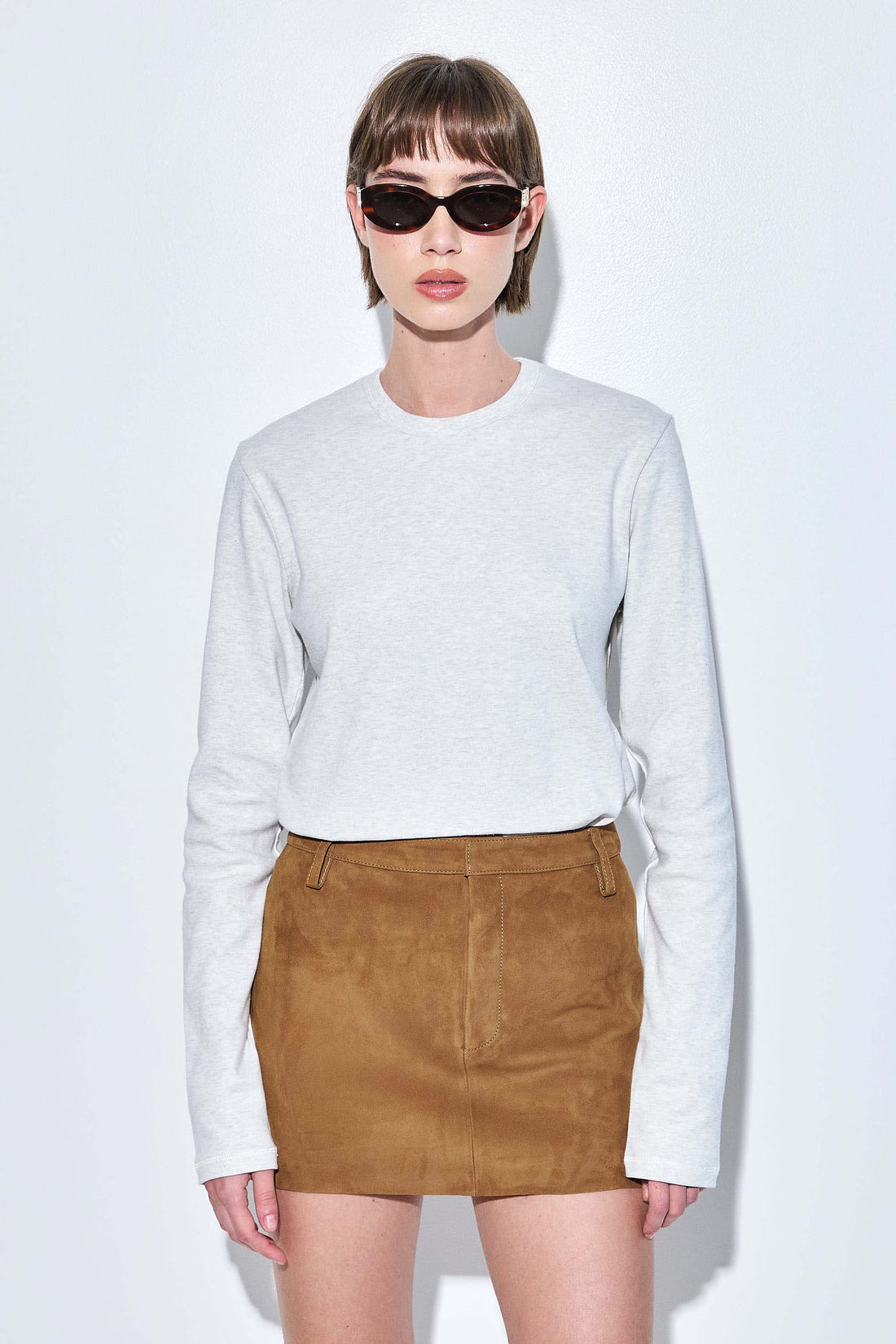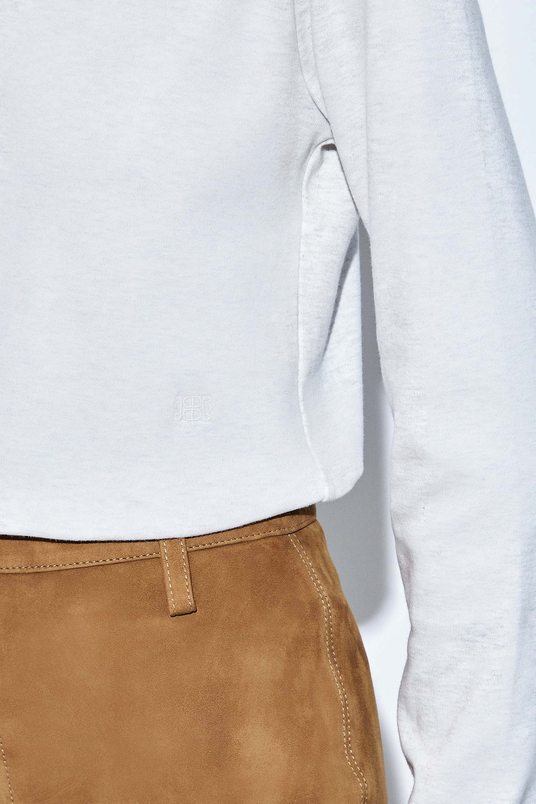 Our long sleeved shirt is the ultimate piece for layering this winter. Crewneck top. Relaxed fit. Featuring a tonal embroidered logo on the front. Style it with our high waisted denim, our classic long trench and a pair of our beautiful oval sunnies for an everyday cool look.