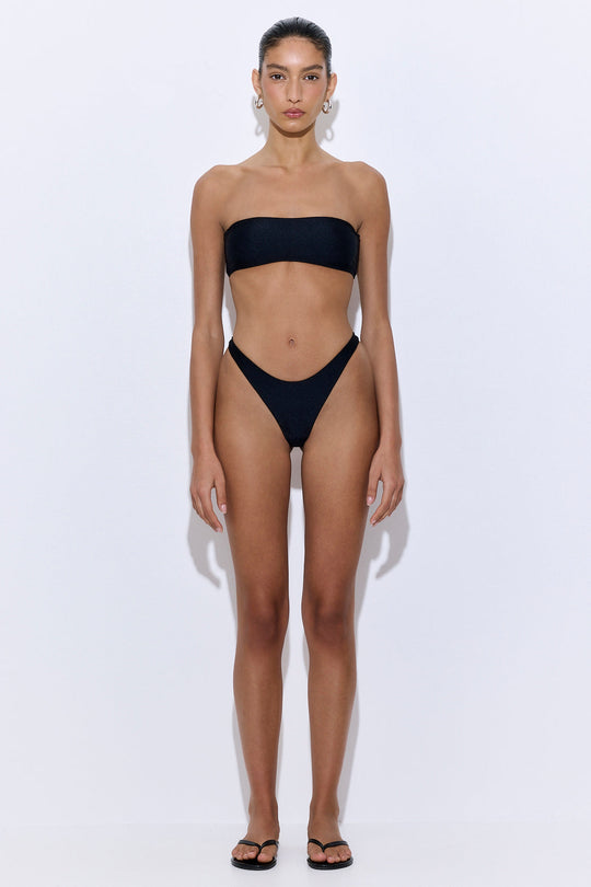 Orea, inspired by the serene beauty of water nymphs, blends effortless style with structured support. Made from sculpting, luxurious Italian fabric that hugs your body for a sleek, contoured fit. Deep scoop silhouette with fixed shoulder straps and a slightly squared open back for a refined yet modern touch. Side wiring for extra support. Darted details on the bust for added shape and support. Preparation for cup inserts (no provided cups included). Features a silver metallic logo detailing on the back side. Lined. Style it with our flattering Maia bottom, our new buckled maxi skirt and a matching scrunchie to seal this gorgeous look.