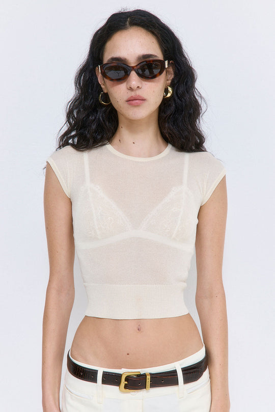 Our new Sheer Midi Skirt is the perfect going-out staple. Made from delicate sheer fabric for a light, airy feel. Thin elastic waistband. Wide ribbed hem. Adjustable low waist. Fully fashioned. Midi length skirt. Complete the look with our matching Sheer Baby Tee and chic Rodika Tote Bag for effortless sophistication.