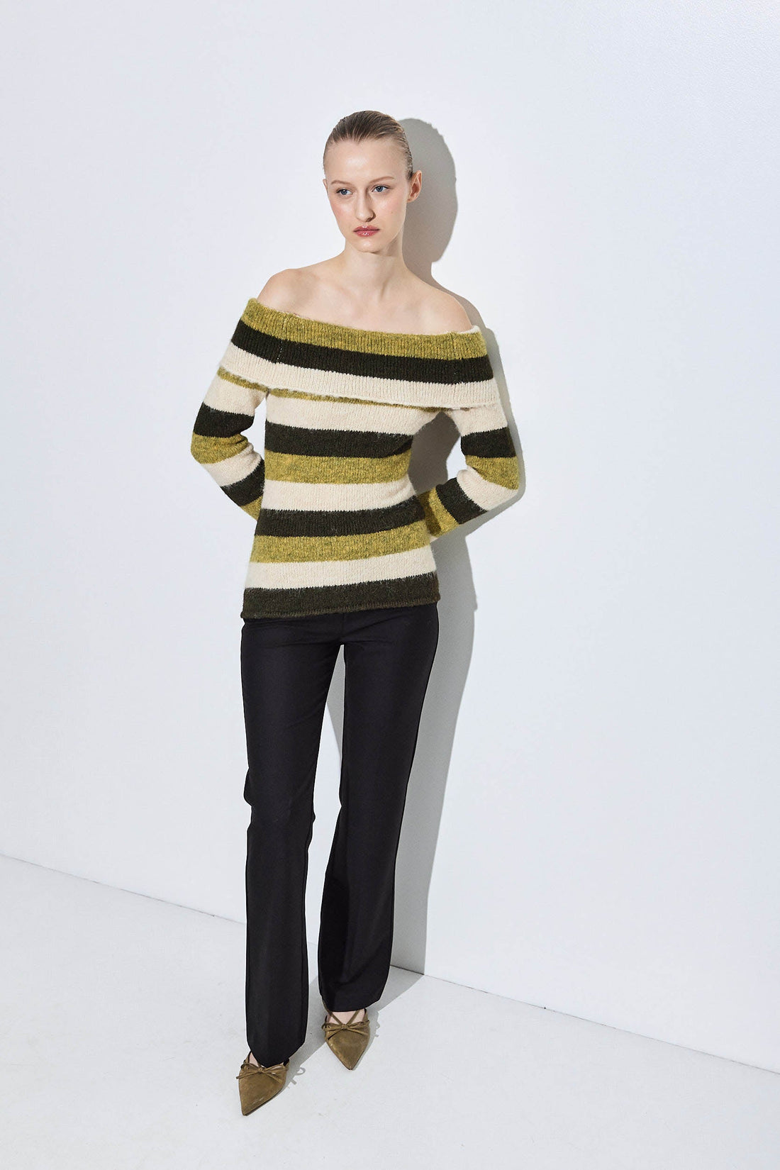 The newest addition to our Fuzzy collection. Our new off shoulder fuzzy sweater was made to elevate your day to night look. Fitted silhouette. Folded panel for a flattering and feminine look. Soft and cozy fabric. Clean finish. Style it with a pair of our flattering denim, our cool oval sunnies and throw our classic trench coat on top to seal this classy look.