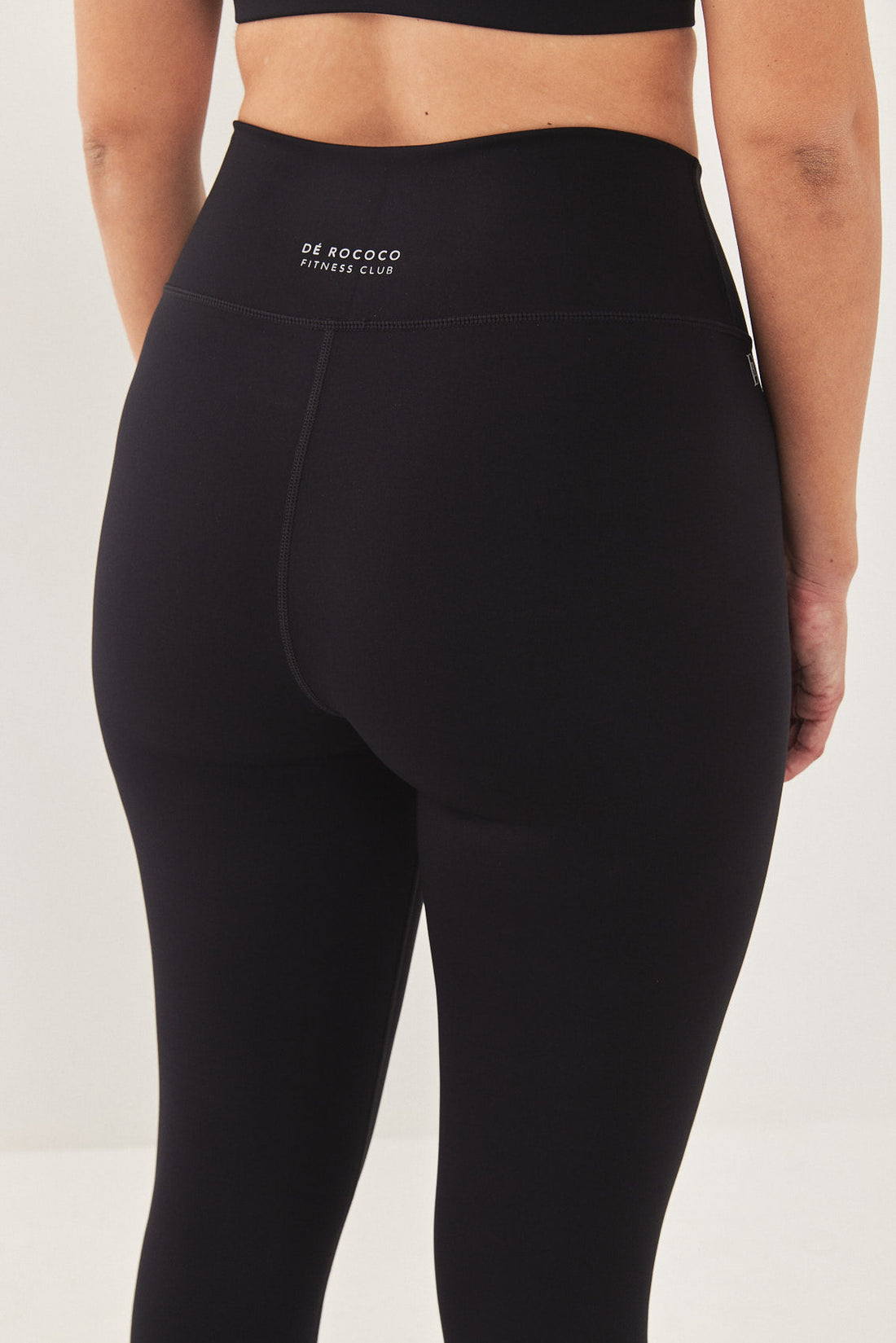 Dé Leggings has a second-skin fit and feel, made from a stretchy smooth fabric that lifts and sculpts your body. High waisted, comes in two lengths to fit your height. Features flat lock stitches and a sweat absorbent lining at the crotch area. Reflector logo on the side front and a fitnéss club signature at the back. Complete the set with one of our matching color fitnéss club top.
