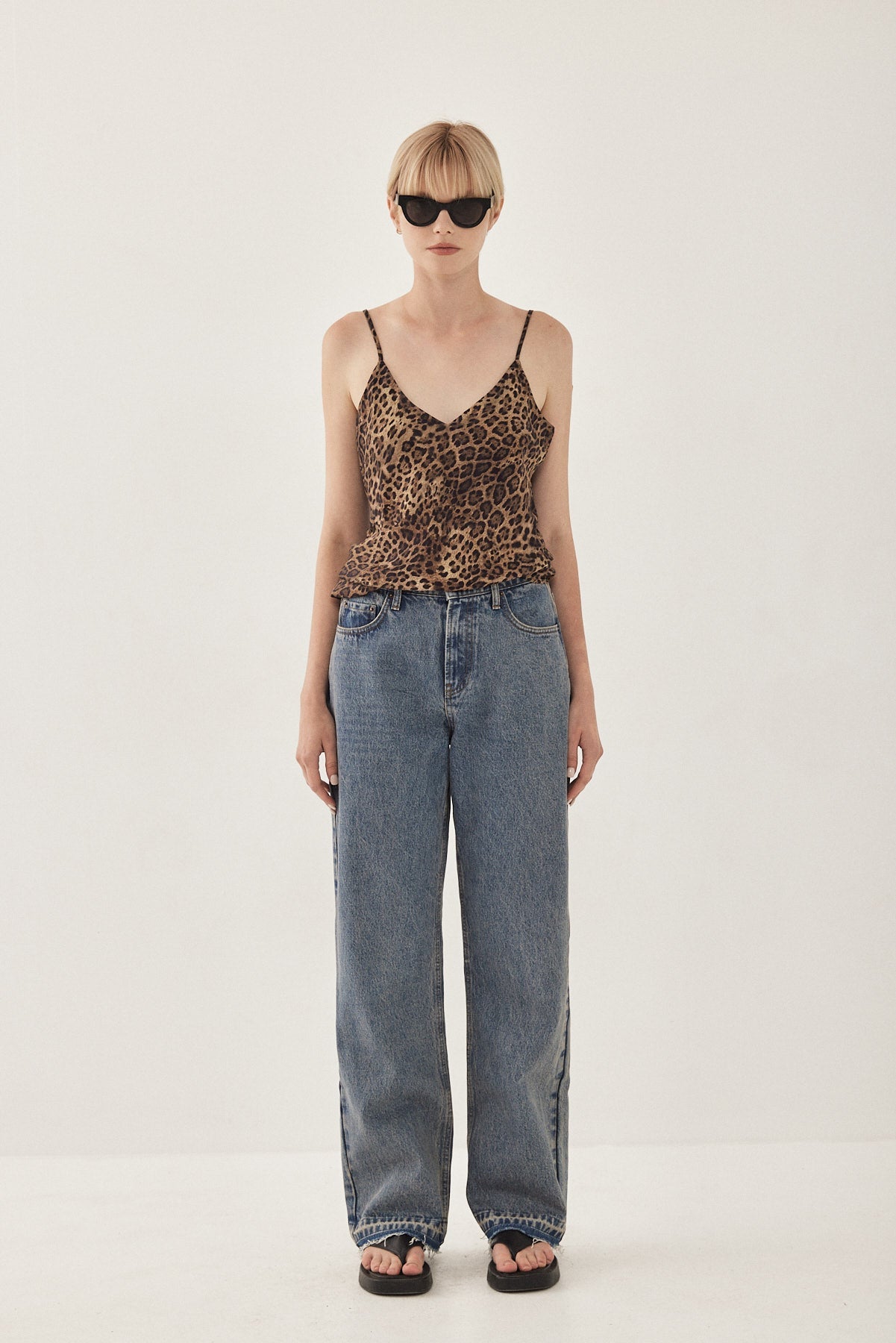 Satin slip camisole. Featuring a v neckline and thin adjustable straps. Made from breathable material. Cut in a special bias cut technique so that the materials falls smoothly and moves with your body. Style yours with the matching satin shorts, our round sunglasses and your favorite shoulder bag for an effortlessly chic look.