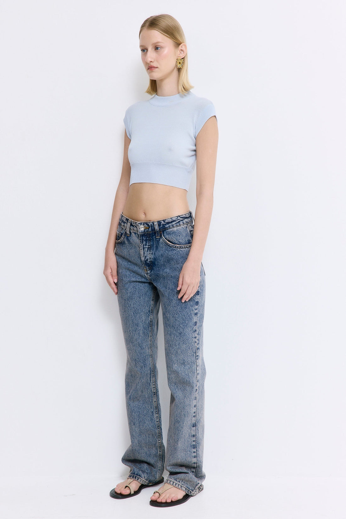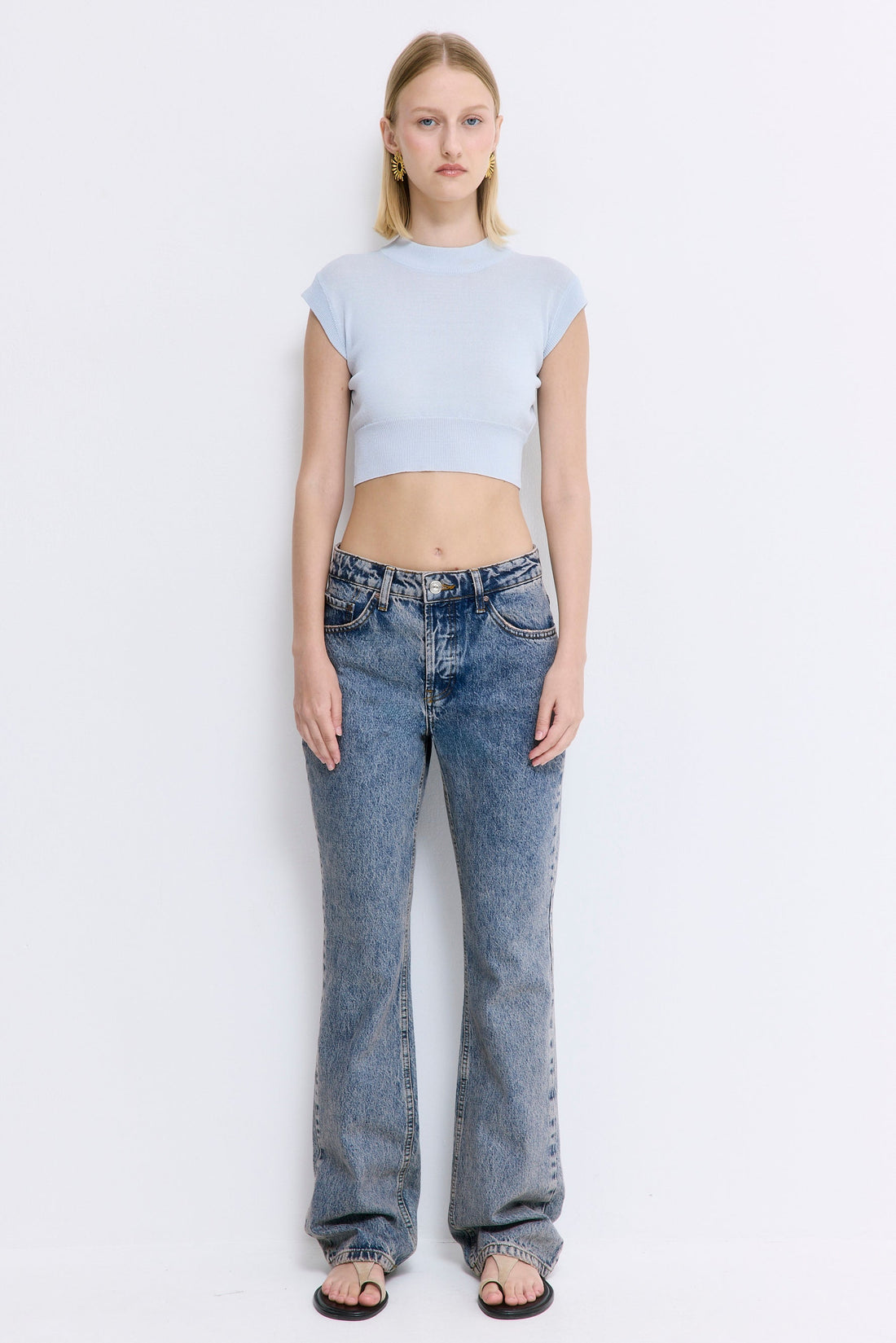 Our No.14 denim is a mid-waist, full-length bootcut that combines timeless design with a modern edge. Featuring a flattering silhouette that elongates the legs, it’s crafted for ultimate comfort and style. A classic buttoned closure and subtle detailing ensure versatility for any occasion. Style it with our lightweight turtle neck knit, our oval sunnies and throw our cool classic bomber for a chic everyday look.