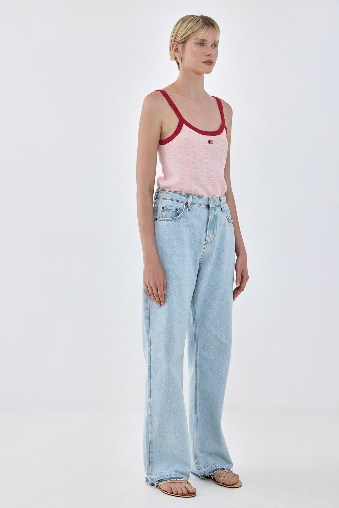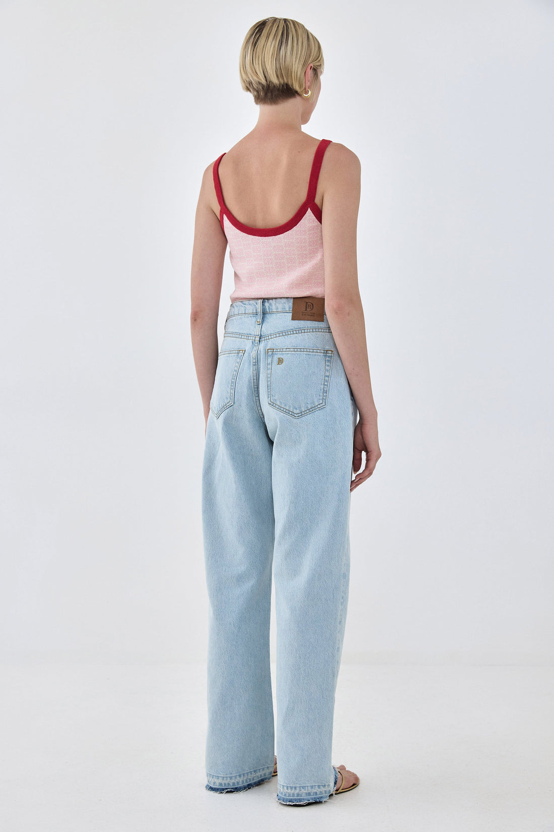 Our No.11 denim is a mid rise full length with a baggy fit. Frontal zip closure. Features a logo detail embroidered above the back pocket. Raw unfolded hemline. Meet your new go to denim. Style yours with an oversized button down and a kitten heel for an effortlessly stylish going out look.
