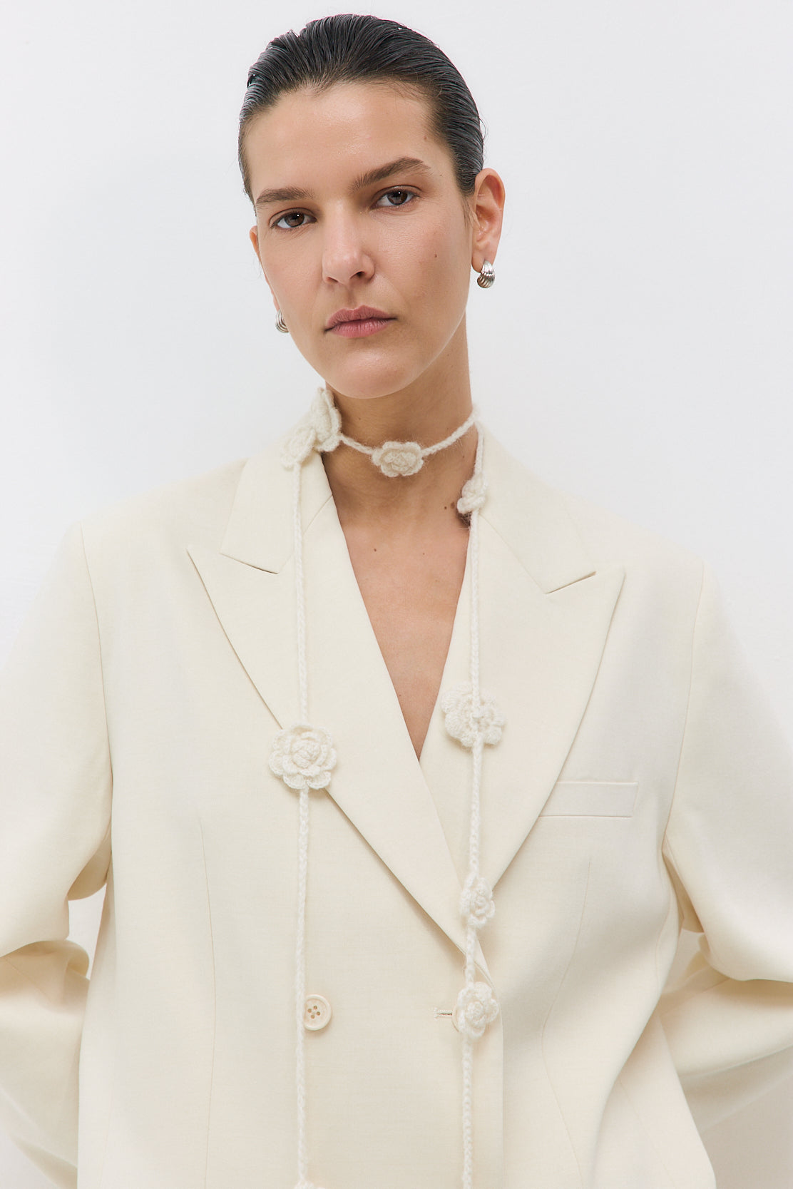 Welcoming new, timeless pieces to our iconic Daddy collection. Double breasted Blazer. Oversized fit. Fully lined. Complete with a lapel collar. Structured shoulders. Two front pockets. Tonal buttons. Featuring two inside pockets. Back slit detailing. Wear it with our new, stylish Slim Daddy Pants and timeless Yvon Shoulder Bag for a refined look.