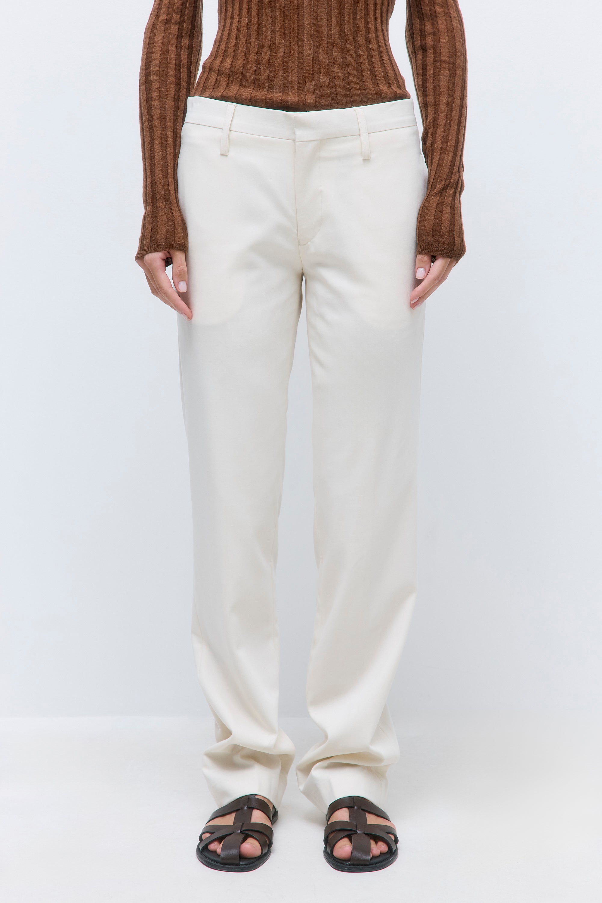 Welcoming new, timeless pieces to our iconic Daddy collection. The ultimate day-to-night pant. Mid waist, slim fit pants. Full length. Two side pockets. Zipper closure with inner hook. Half-lined. Tonal embroidered logo on the back. Includes back pockets featuring tonal buttons. Style it with our luscious Classic Long Sleeve T Shirt and our sleek new Double Breasted Daddy Blazer for a sophisticated, yet comfortable look.