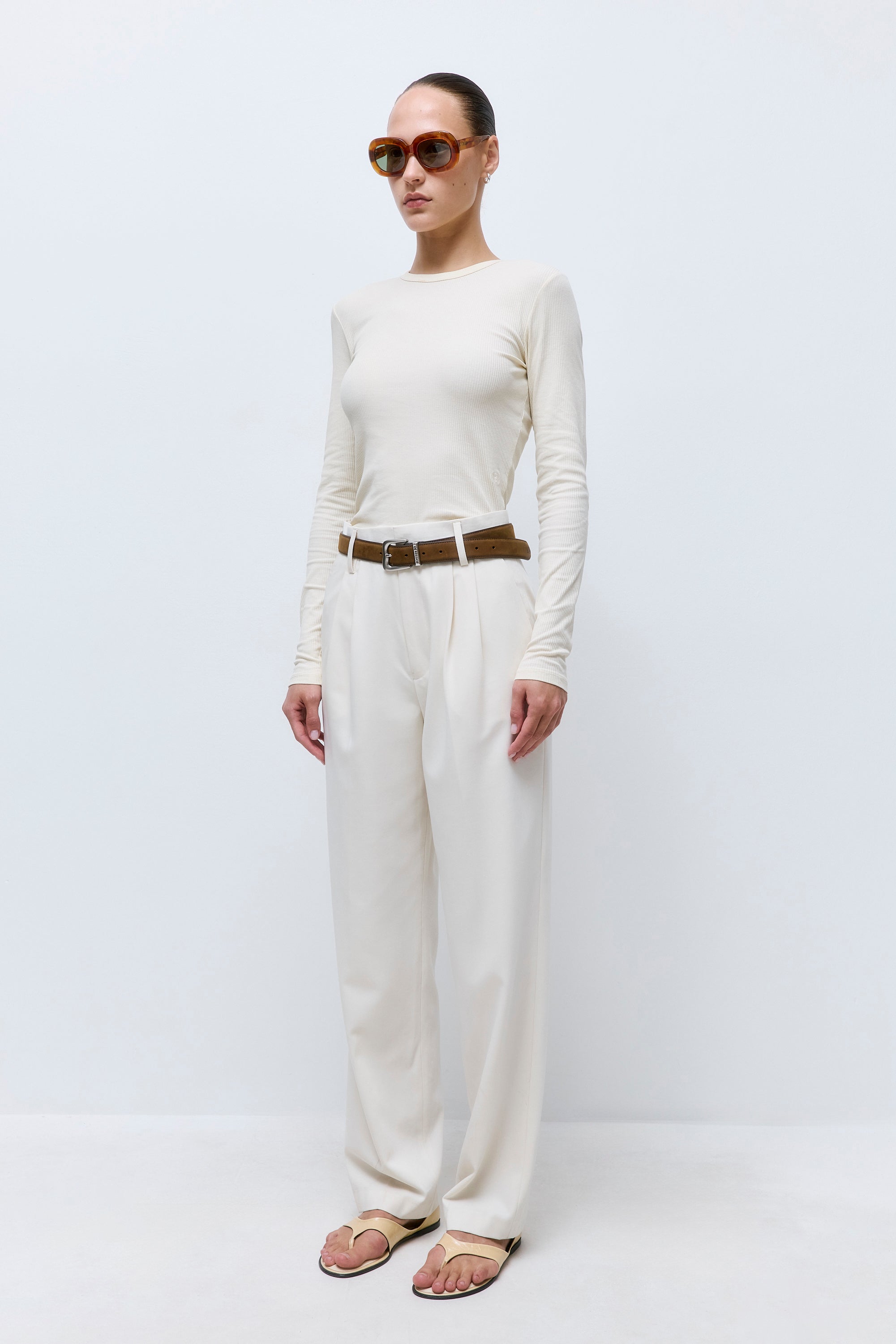 Welcoming new, timeless pieces to our iconic Daddy collection. The ultimate day-to-night pant. High waisted. Tapered leg. Full length pant. Featuring two front pleats. Two side pockets. Zipper closure with inner hook. Half-lined. Tonal embroidered logo on the back. Includes back pockets. Style it with our luscious Classic Long Sleeve T Shirt and our sleek new Double Breasted Daddy Blazer for a sophisticated, yet comfortable look.