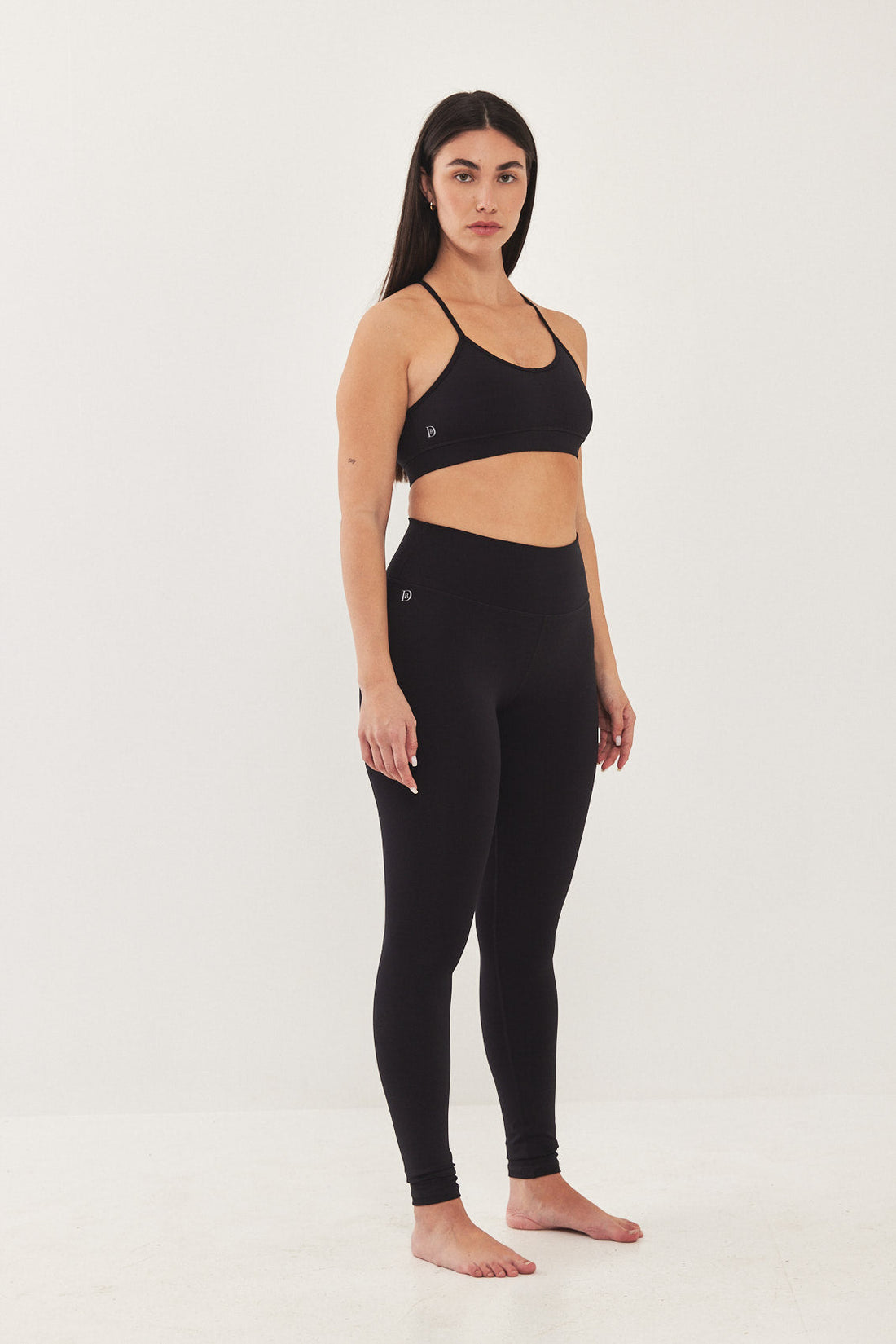 Dé Leggings has a second-skin fit and feel, made from a stretchy smooth fabric that lifts and sculpts your body. High waisted, comes in two lengths to fit your height. Features flat lock stitches and a sweat absorbent lining at the crotch area. Reflector logo on the side front and a fitnéss club signature at the back. Complete the set with one of our matching color fitnéss club top.