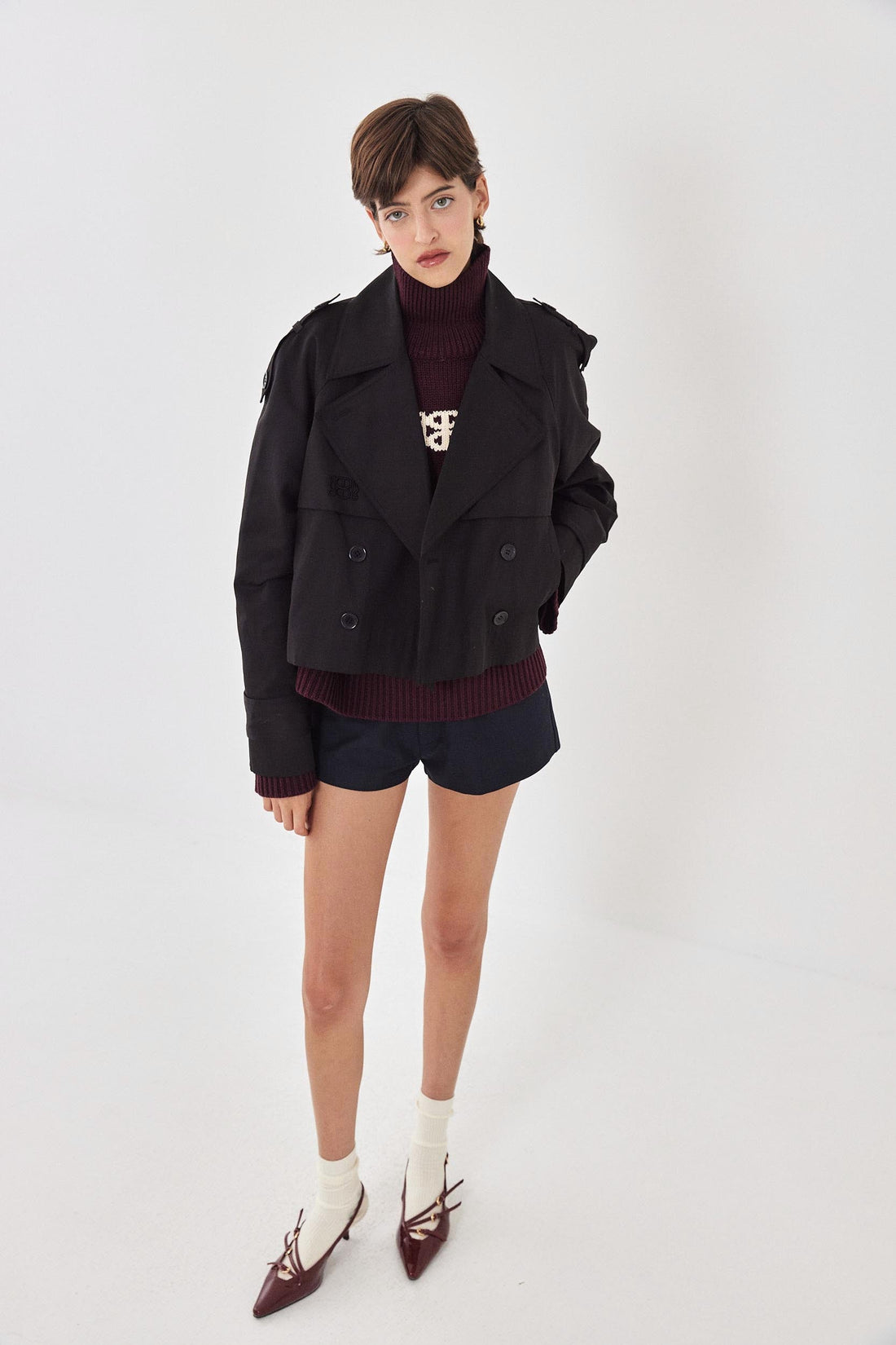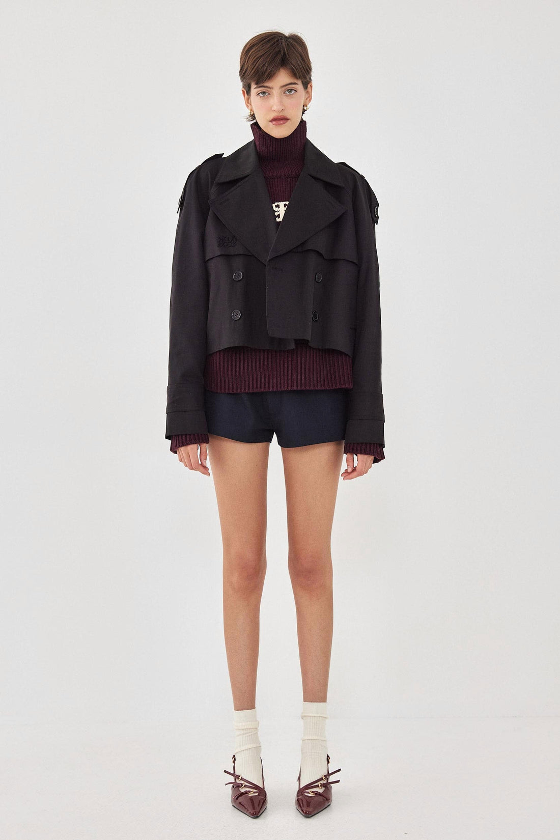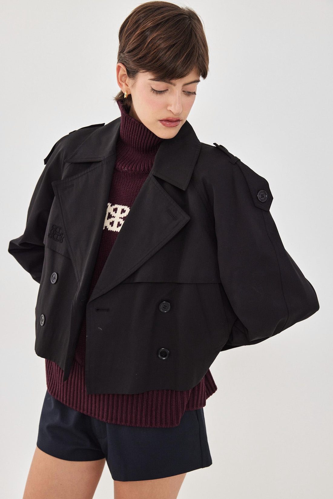 Double Breasted Cropped Trench Coat