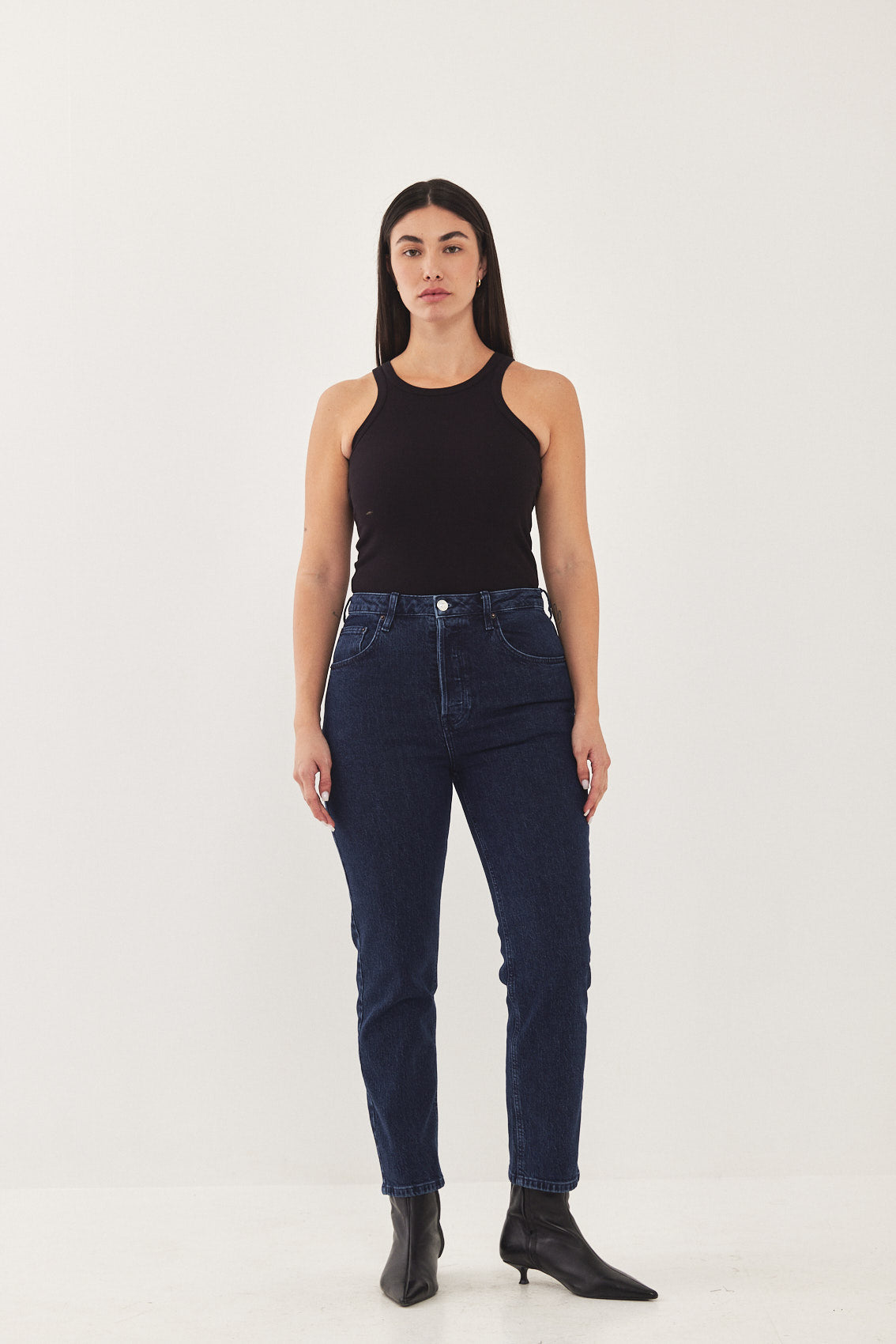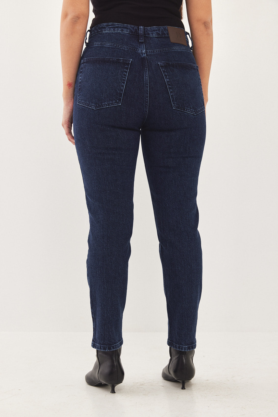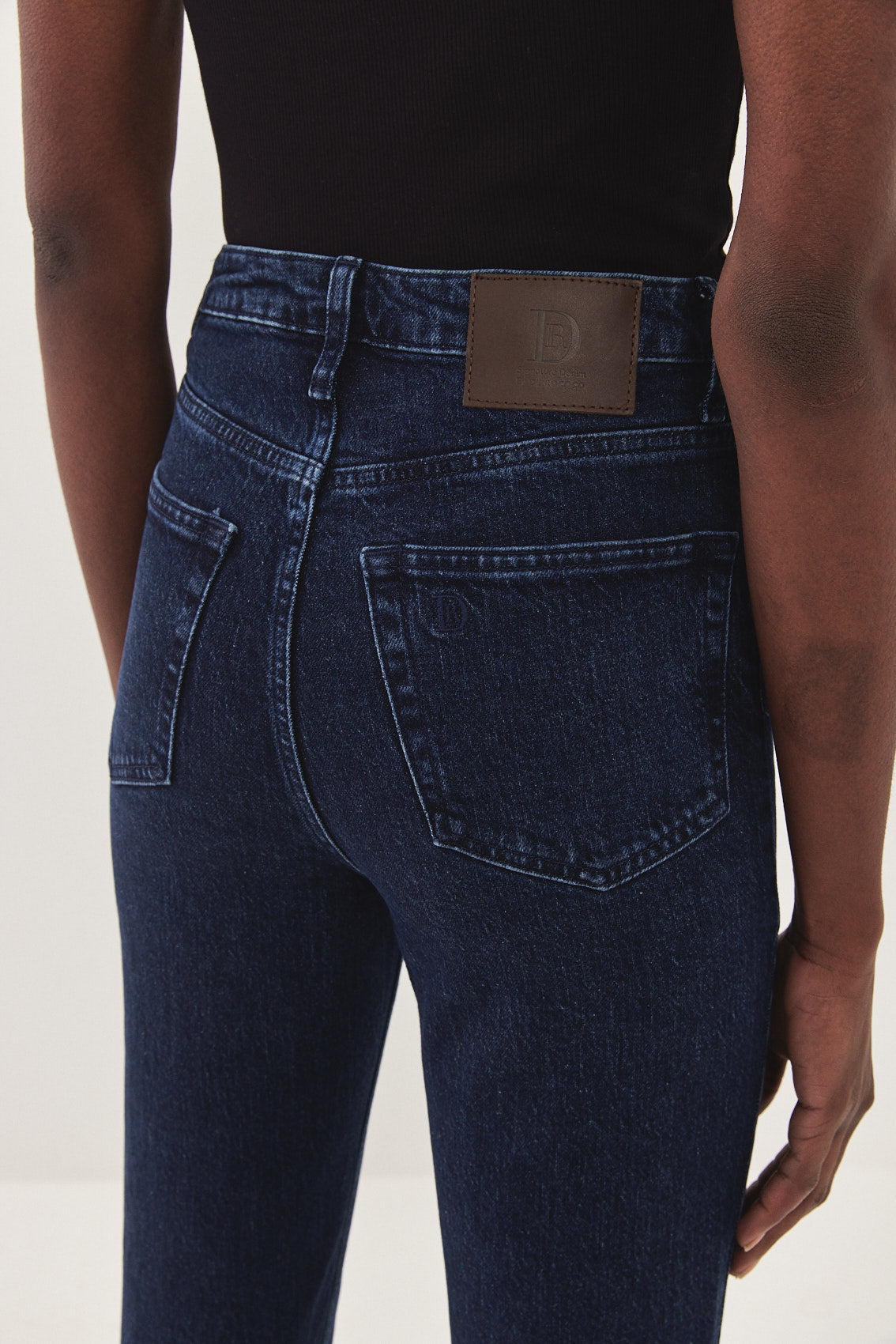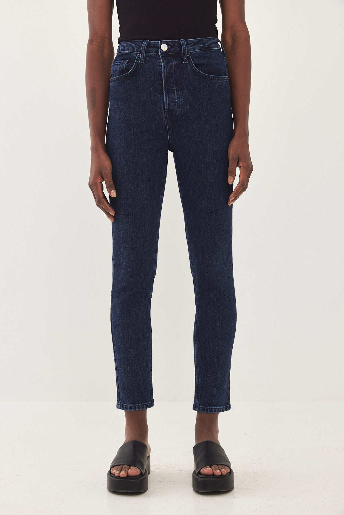 No.4 high waisted jeans features a slim cropped fit. Front buttoned closure and back embroidered logo detail at pocket. Made from soft cotton with a little stretch, built to contour curves. Wear yours with anything from T shirts to chunky knits.