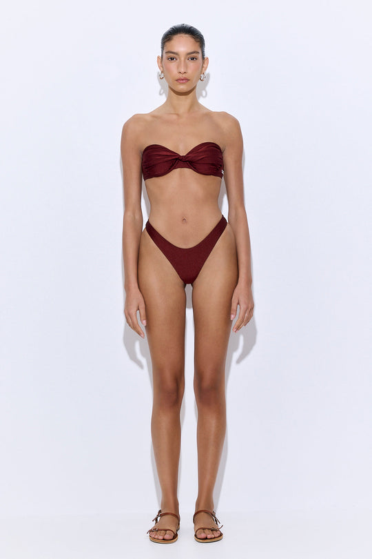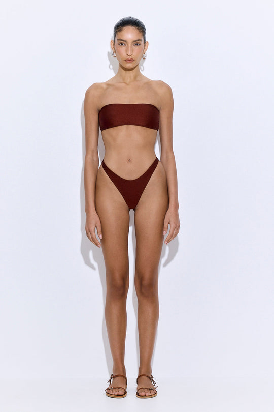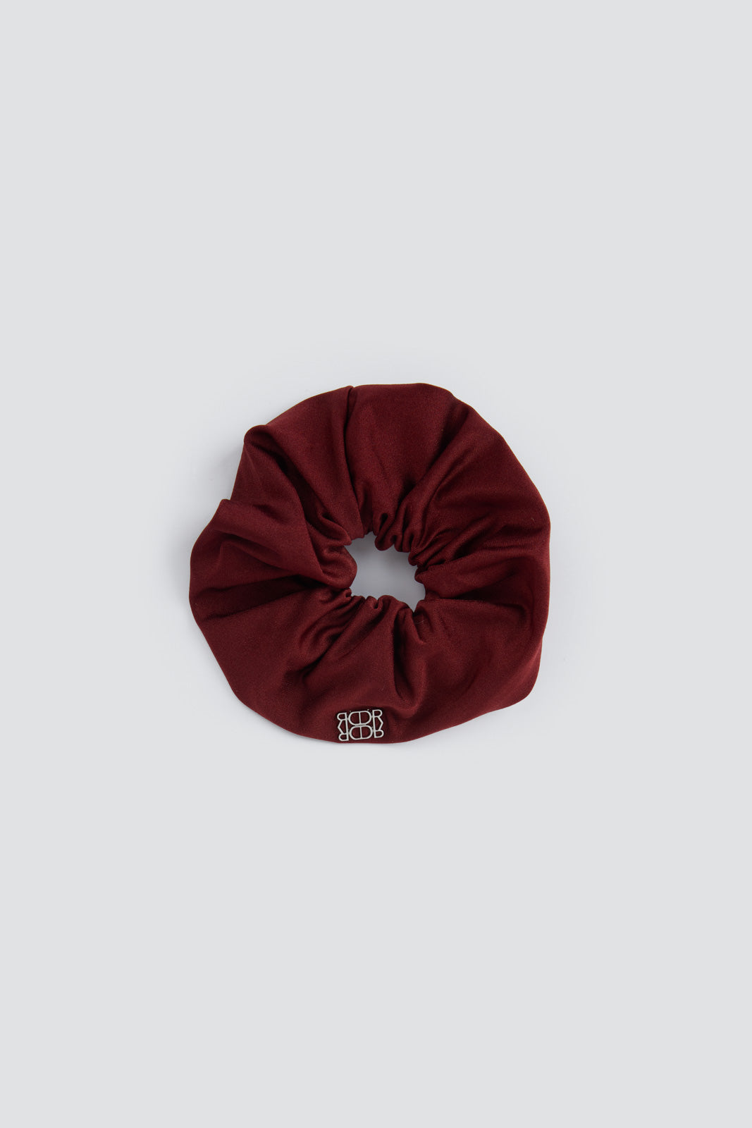 The cutest scrunchie you'll own. Luxurious shiny fabric. Silver metallic logo detailing on the center. Style it with our matching bikini for chic and playful summer look.