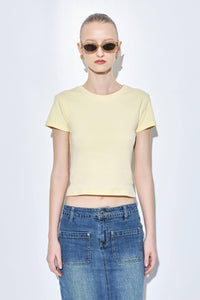 A classic baby tee is truly a wardrobe essential. Crewneck. Slightly cropped. Lightweight cotton fabric, perfect for the warmer weather. Tonal logo embroidery detailing at the front side. Style it with your favorite pair of denim, kitten heels and clutch for the perfect day to night look.