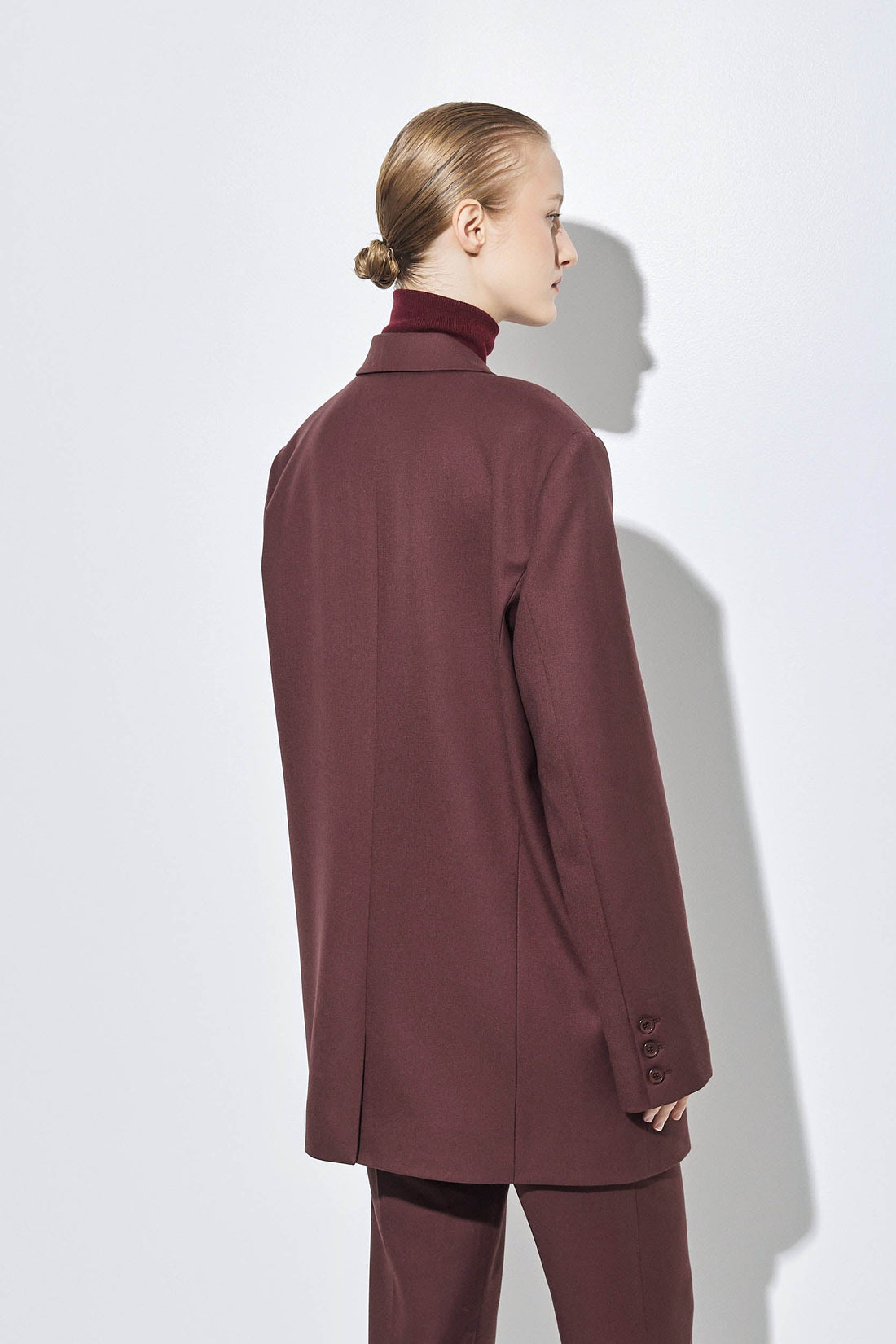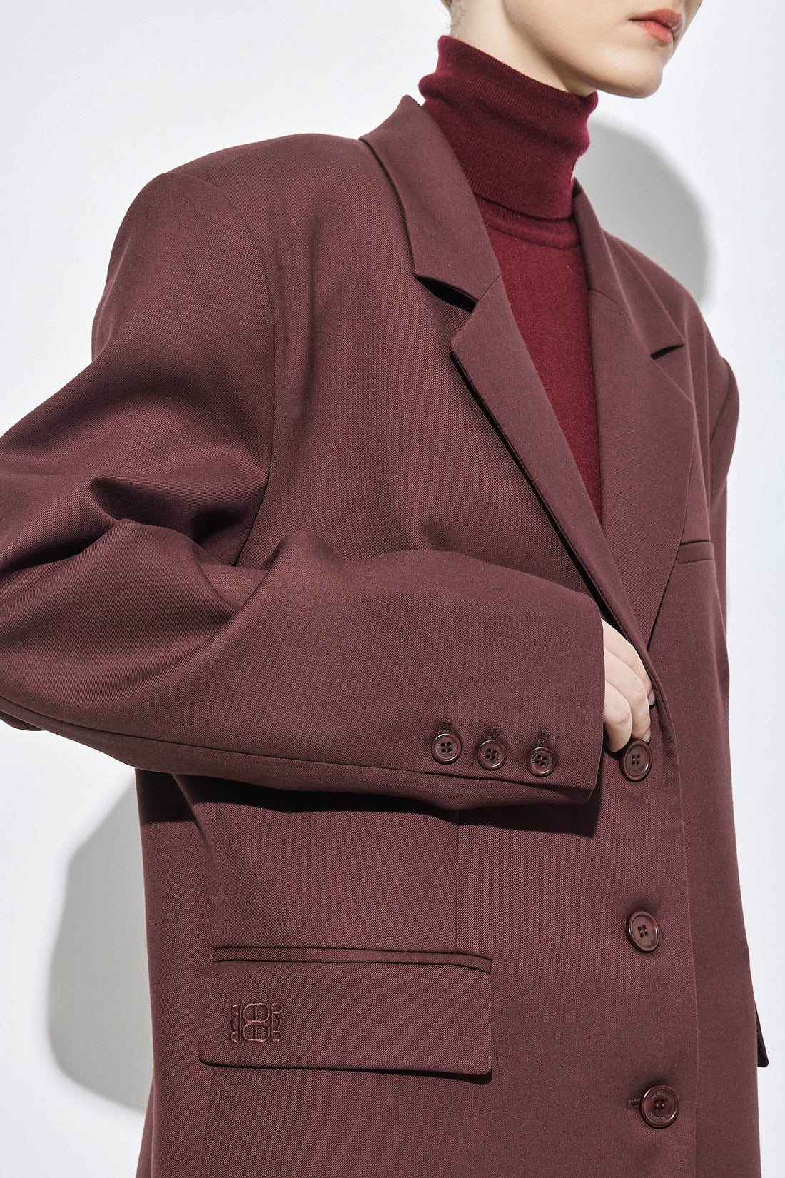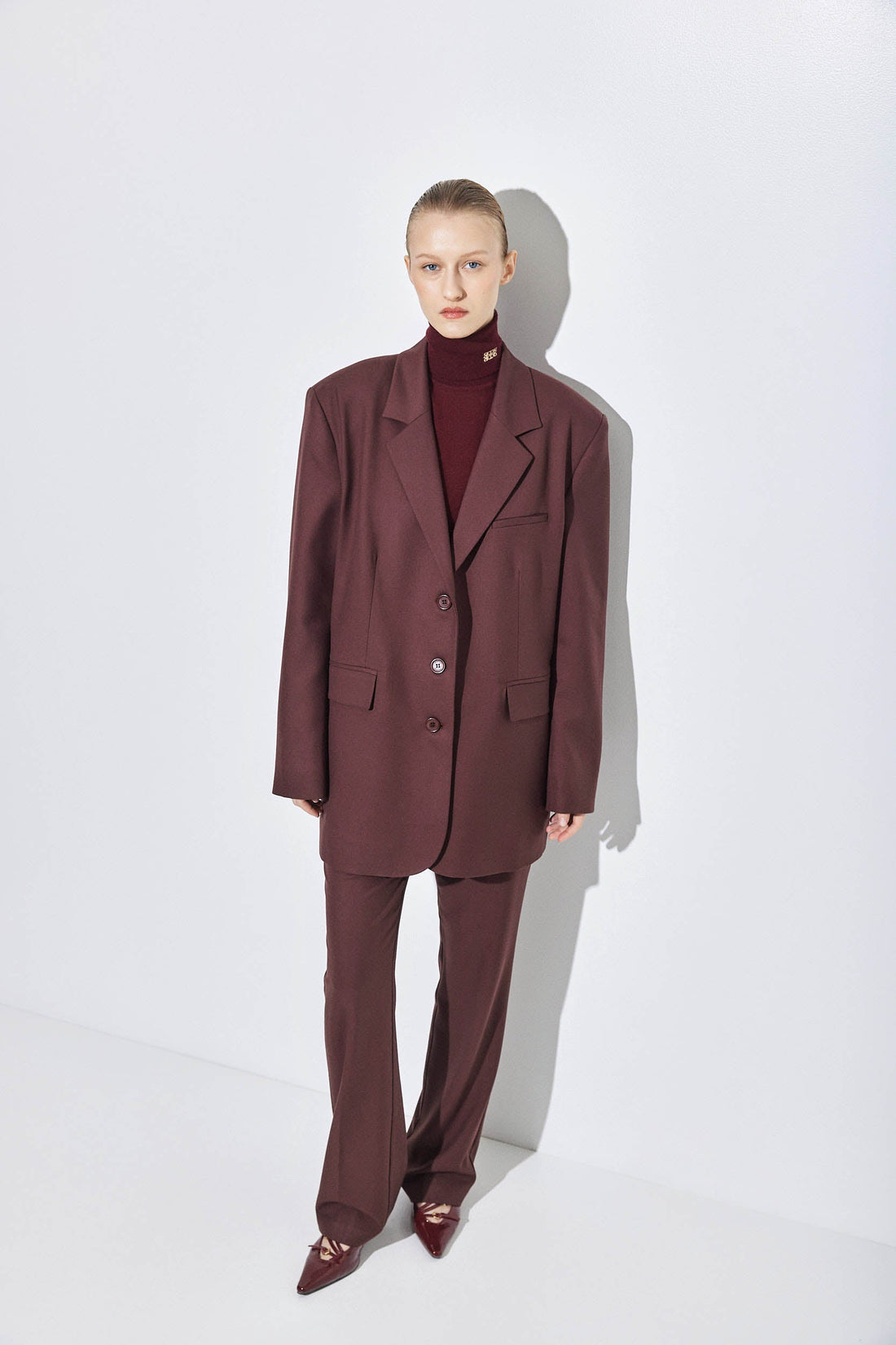 Our new tailored daddy blazer is a timeless piece this season in a new luxurious tailored fabric. Oversized fit. Features a lapel collar. Logo engraved button closure. Three front faux pockets. Back slit. Lined. Tonal logo embroidery on the side. Padded shoulders. Style it with our daddy bootcut pants, our lightweight turtleneck and our signature mini logo belt for a day to night classy look.