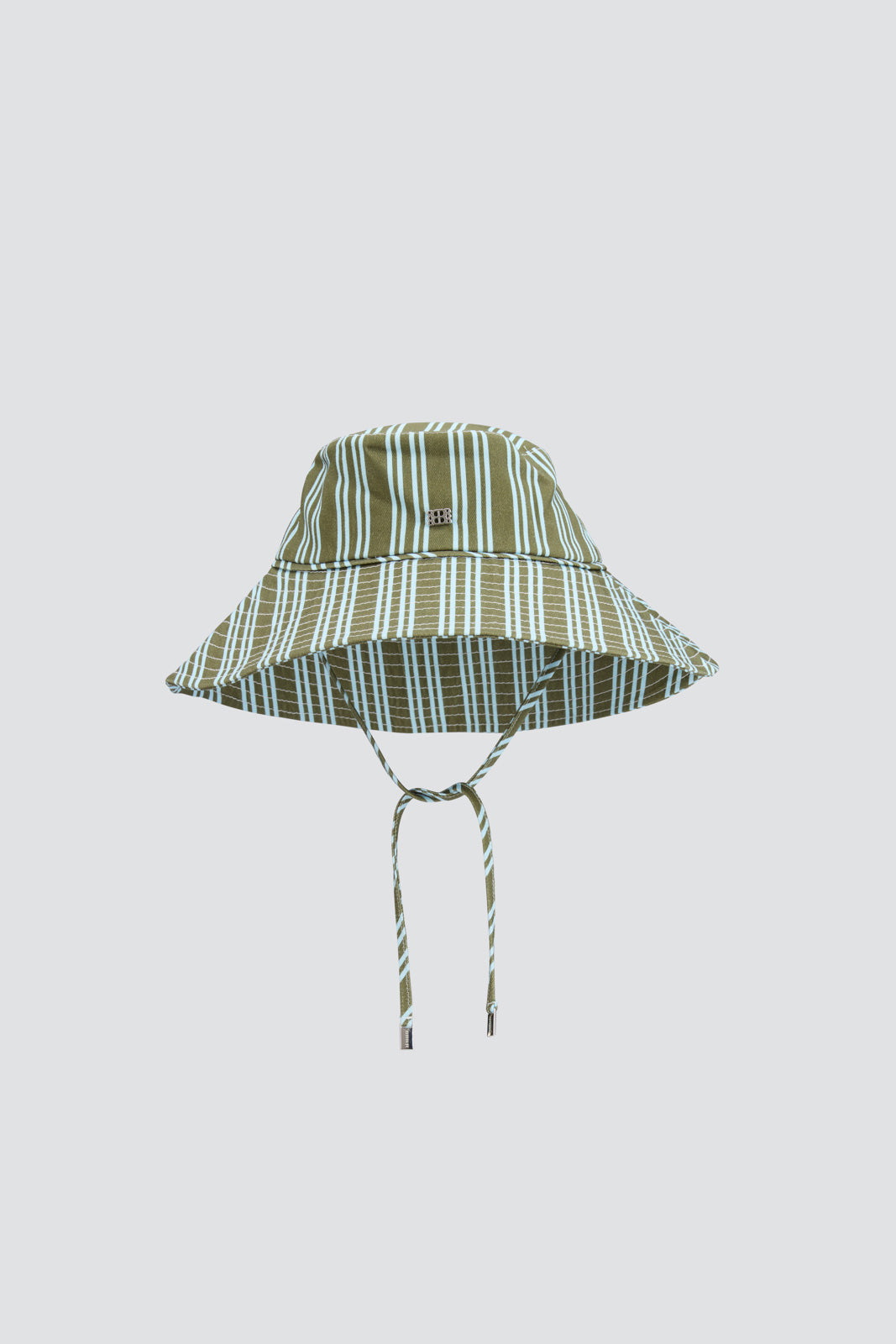Tonal stitching detailing. Logo press detail. Two strings to tie the hat with a silver eglet finishing with a delicate logo. Double lined. The perfect summer accessory to protect our skin from the sun without compromising style. The ultimate hat to complete any summer look.