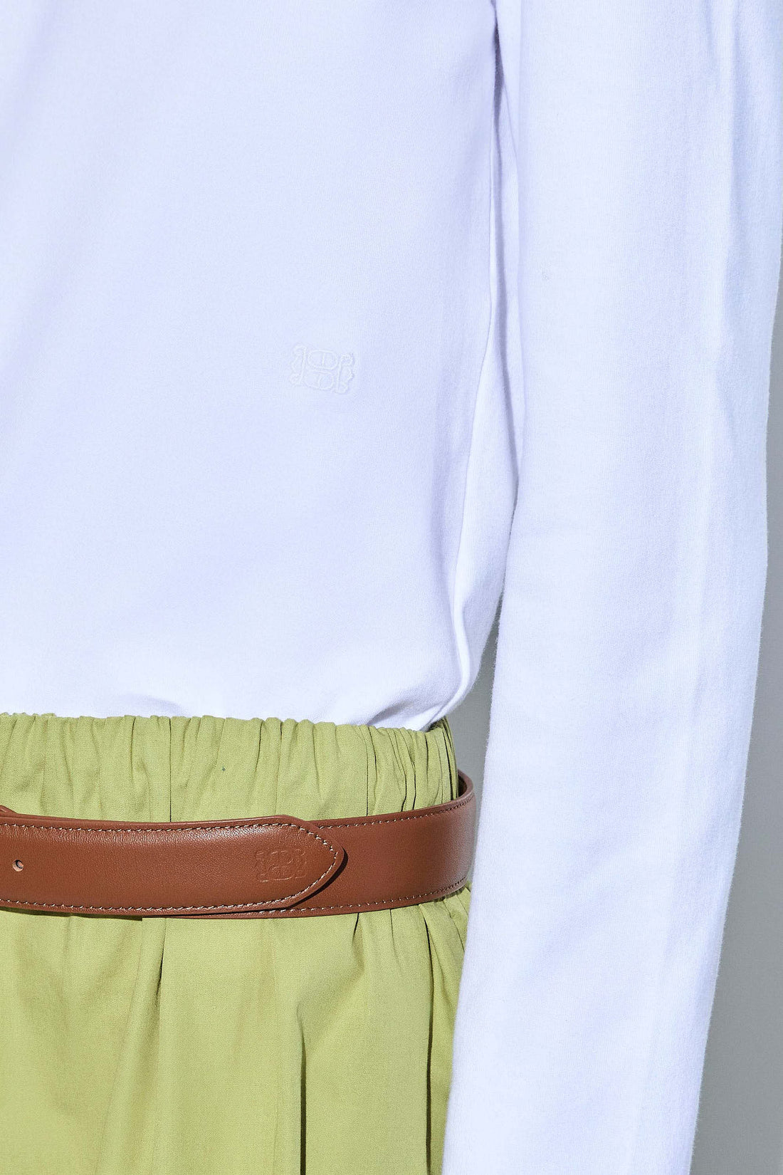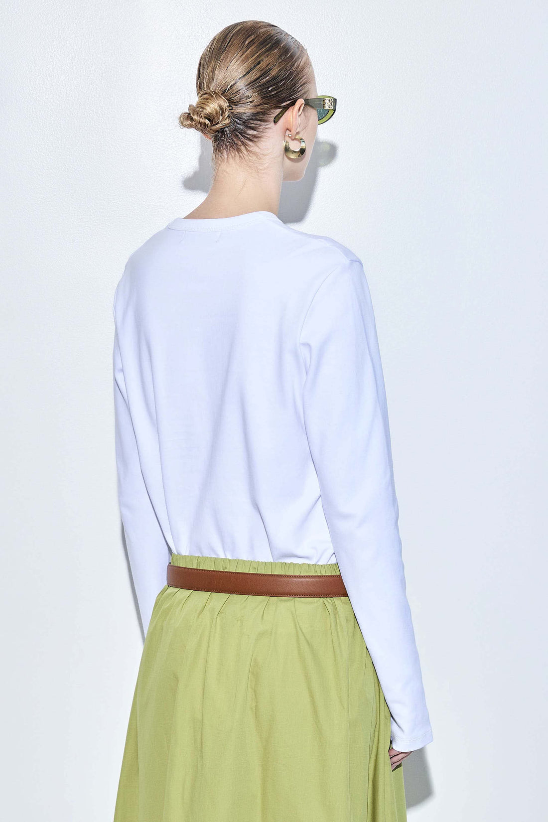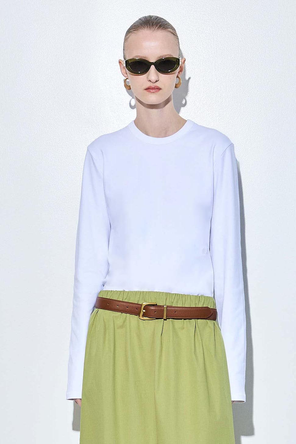 Our long sleeved shirt is the ultimate piece for layering this winter. Crewneck top. Relaxed fit. Featuring a tonal embroidered logo on the front. Style it with our high waisted denim, our classic long trench and a pair of our beautiful oval sunnies for an everyday cool look.