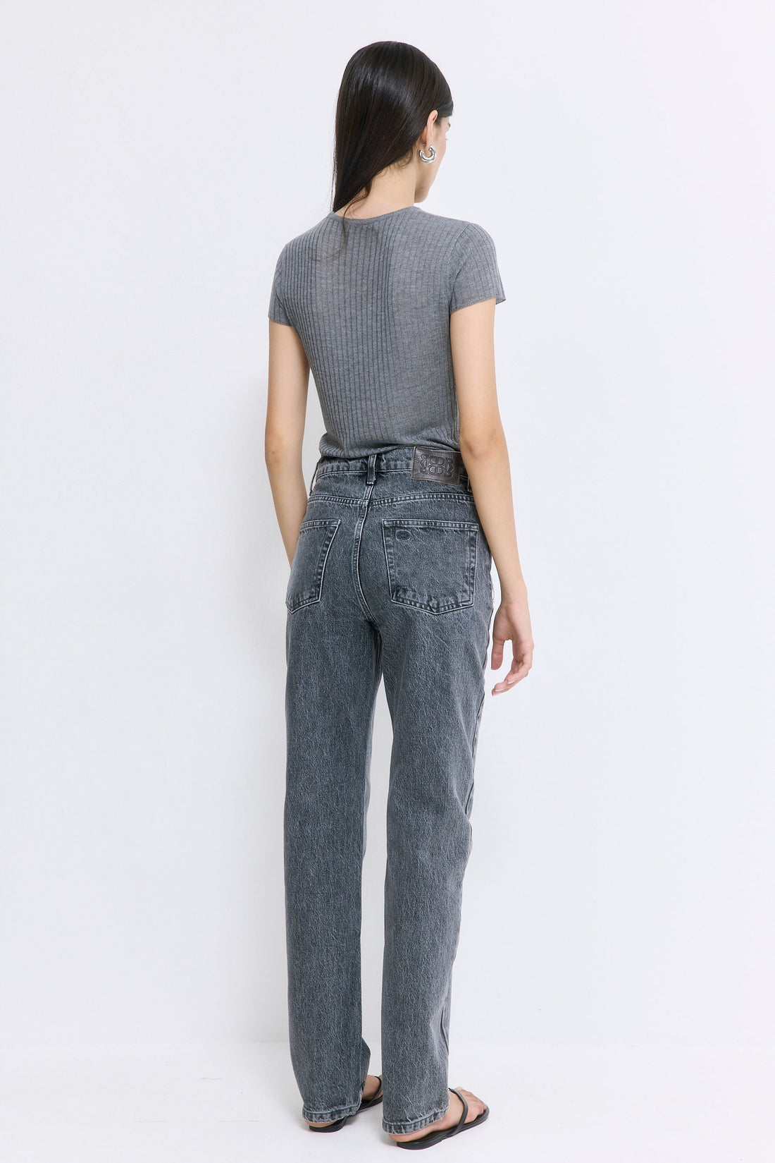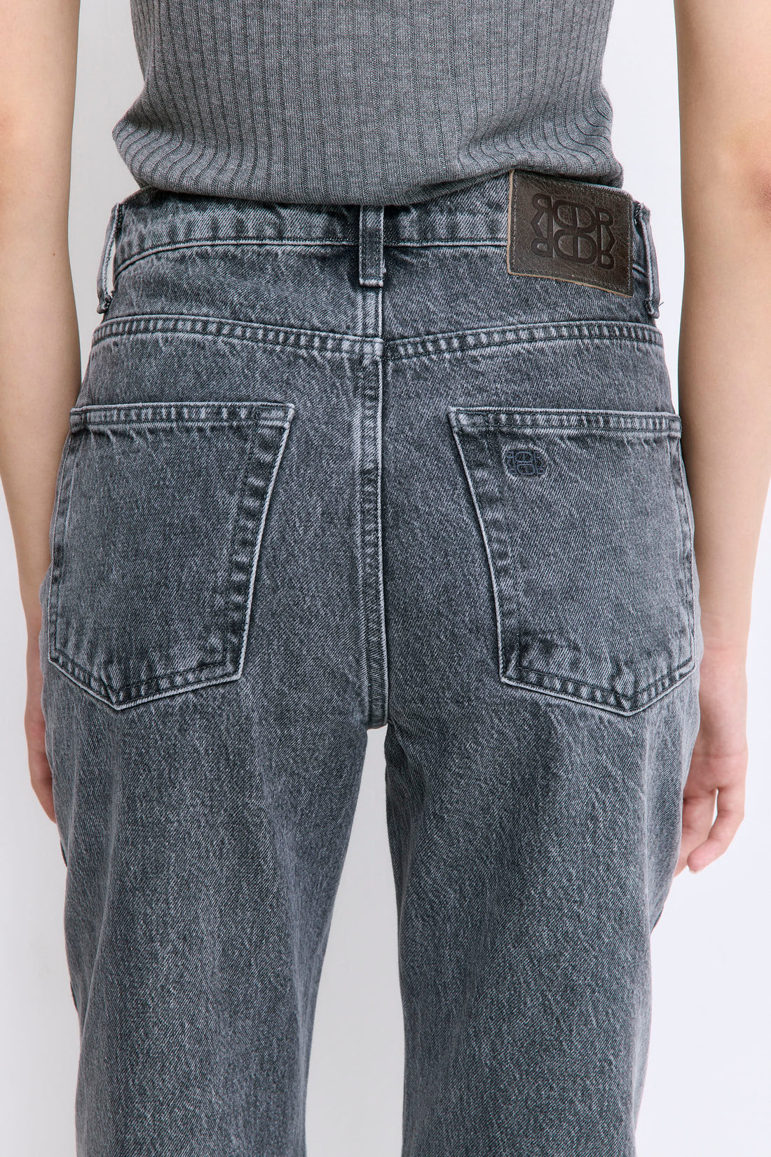 Our No.6 denim is a high waisted full length fit. An essential addition to your wardrobe. Front buttoned closure. Features a logo detail embroidered at the back pocket. Style it with your favorite basic top, a pair of hoop earrings and a kitten heel for the ultimate effortless look.