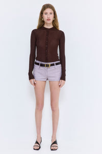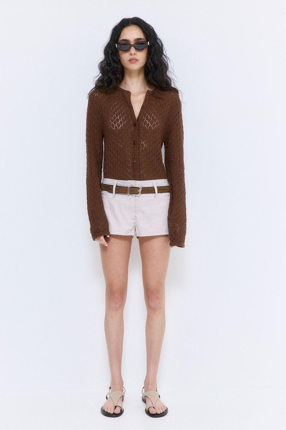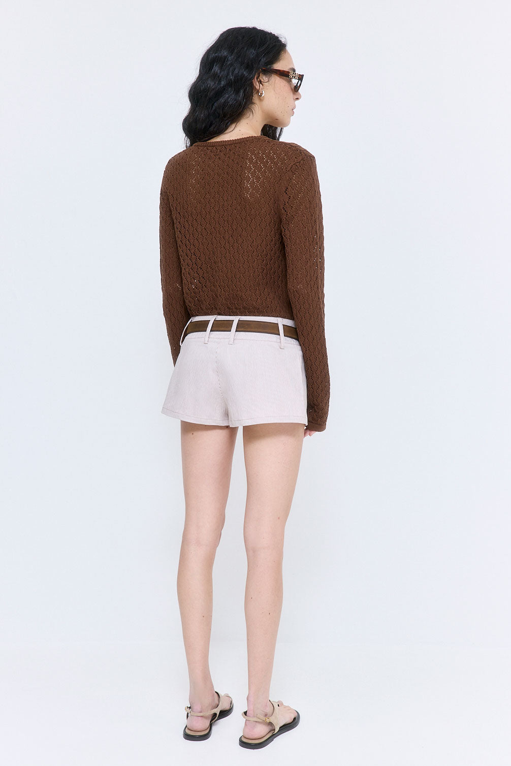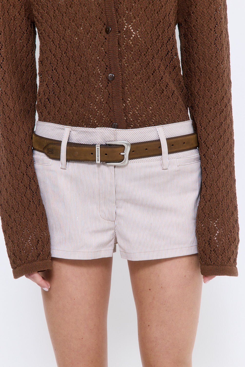 Our new Striped Drill Shorts are the ultimate summer essential. Wide waistband. Internal hook-and-bar closure. Low waisted. Subtle welt front pockets. Delicate belt loops. Tonal logo embroidery at the side back. Style it with our timeless Ruffled Poplin Strappy Top and sleek Signature Belt for an effortless look.