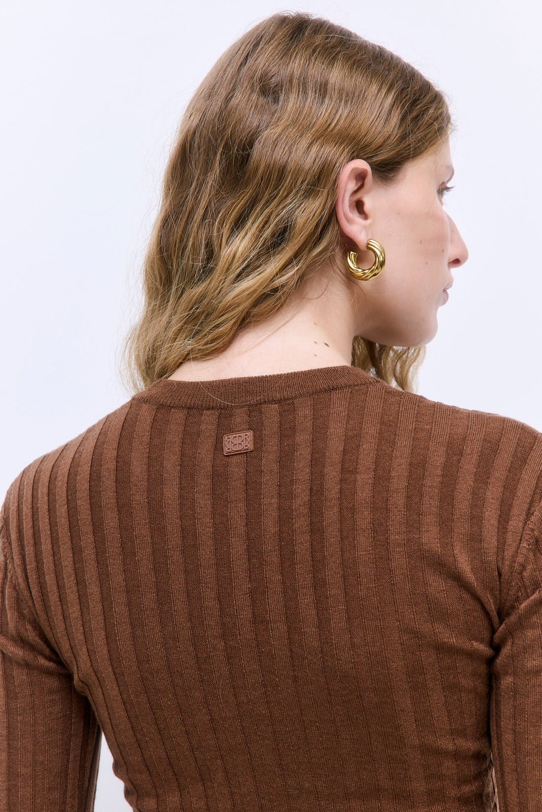 The ultimate transition piece, from summer to fall. Subtle V neckline. Wibe rib knit. Fitted silhouette. Fully fashioned. Tonal silicon logo on the back. Style it with our iconic No. 15 Denim and timeless Oval Sunglasses for a simple, yet sleek look.