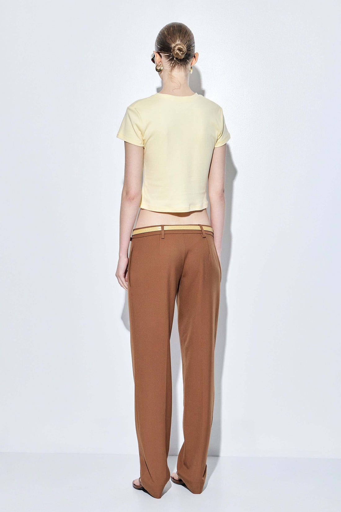 Our new low rise daddy pants are a true must have this season. low waisted. Straight fit. Front zipper and metal hook closure. Unlined. Belt loops. Full length. Tonal embroidered logo on the back. Style it with our tailored daddy vest and throw our tailored daddy blazer on top for a classy and chic look.