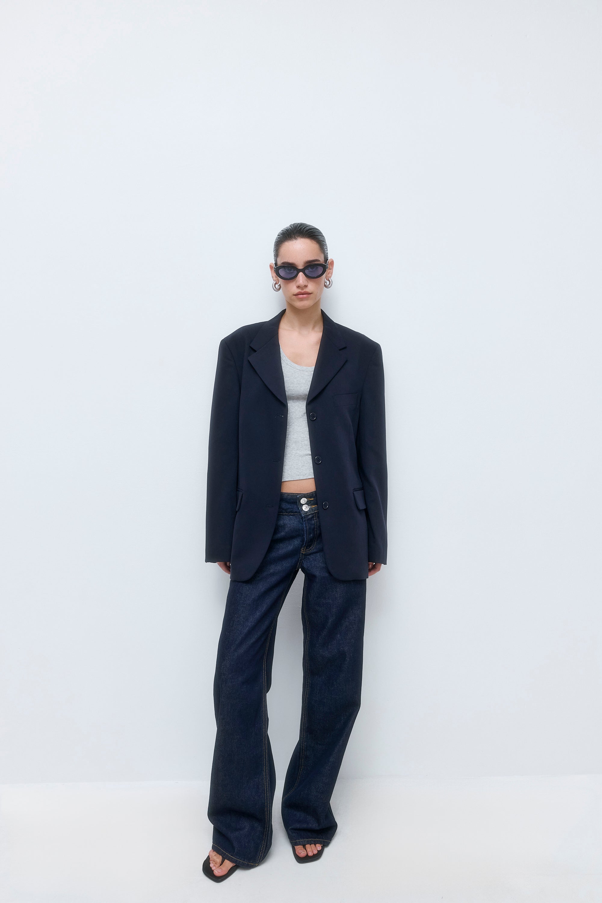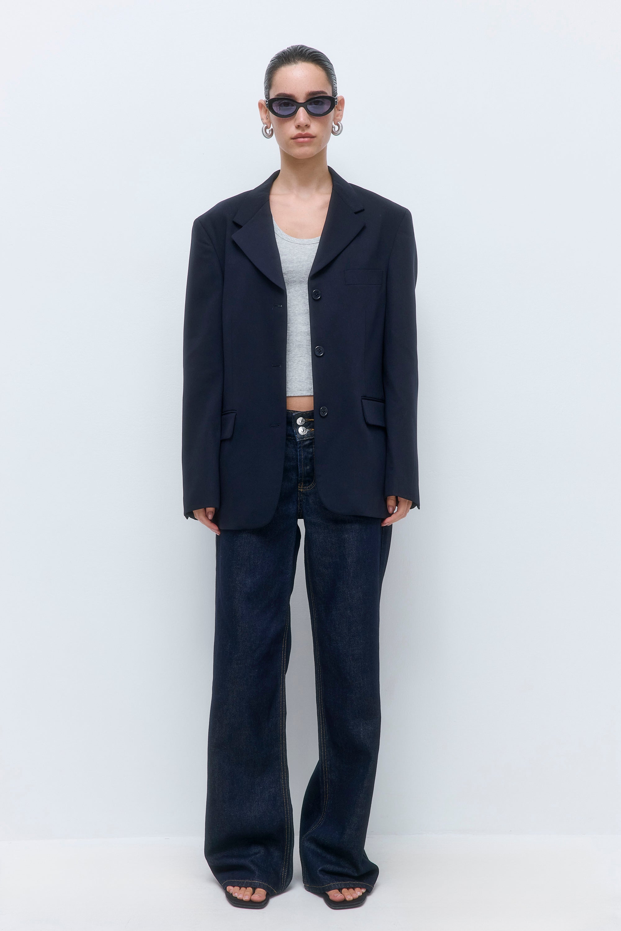 Welcoming new, timeless pieces to our iconic Daddy collection. A classic blazer. Oversized fit. Complete with a lapel collar. Featuring two front flap pockets. Tonal buttons with contrast trim edge. Tonal embroidered logo. Fully lined. Detailed with two inside pockets. Wear it with our new, stylish Slim Daddy Pants and timeless Yvon Shoulder Bag for a refined look.