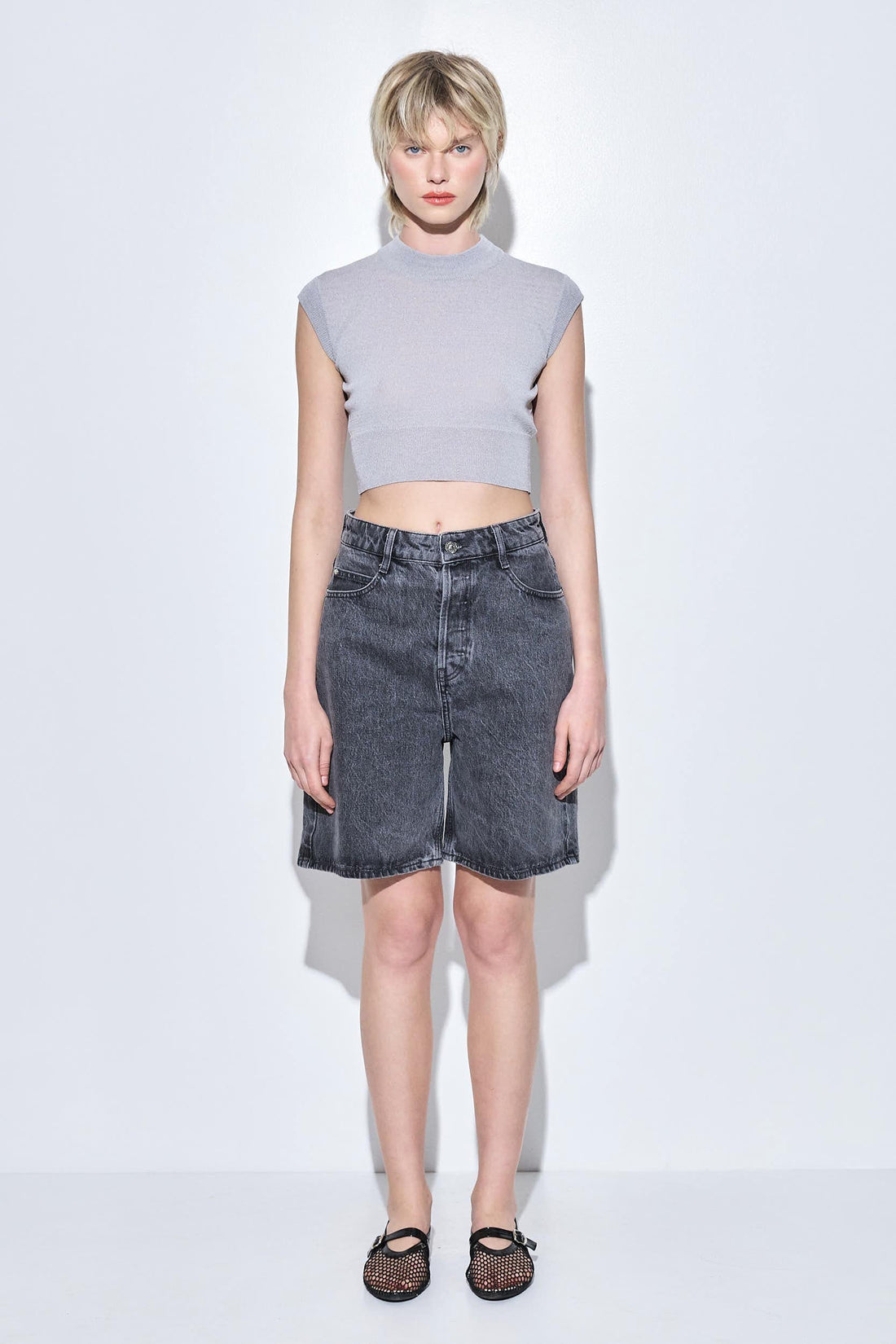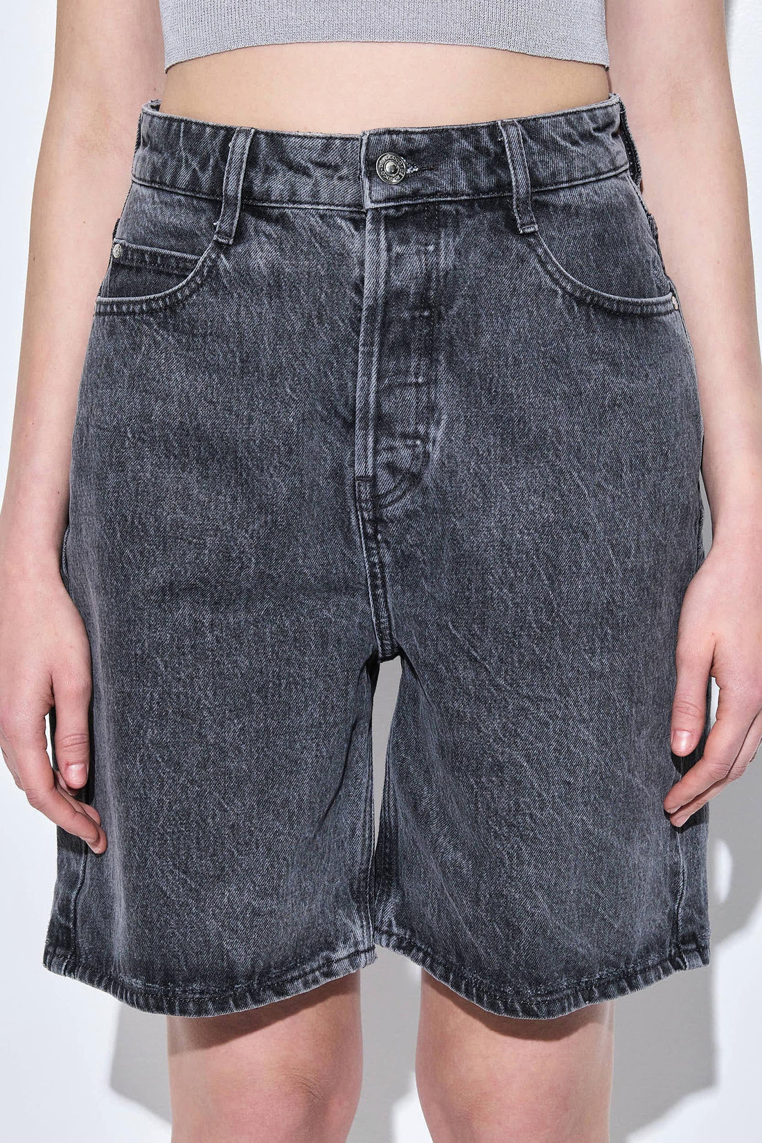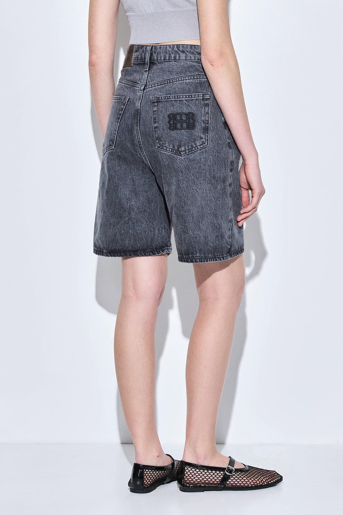 The ultimate summer denim essential. Long Bermuda. Made from 100% premium cotton. Featuring logo embroidery on the back pocket. Wide fit. Belt loops. Two front pockets. Two back pockets. Leather patch with debossed logo detailing. Style it with our classic crewneck T shirt, our signature belt and your favorite daddy blazer for an effortless put together look, perfect for the summer heat.