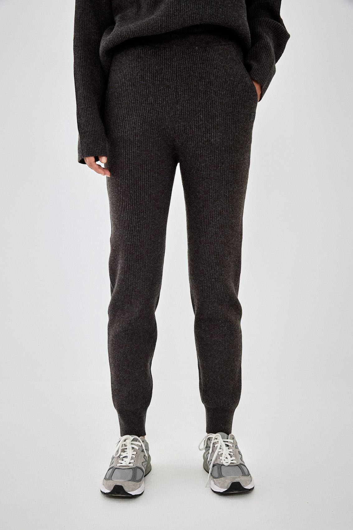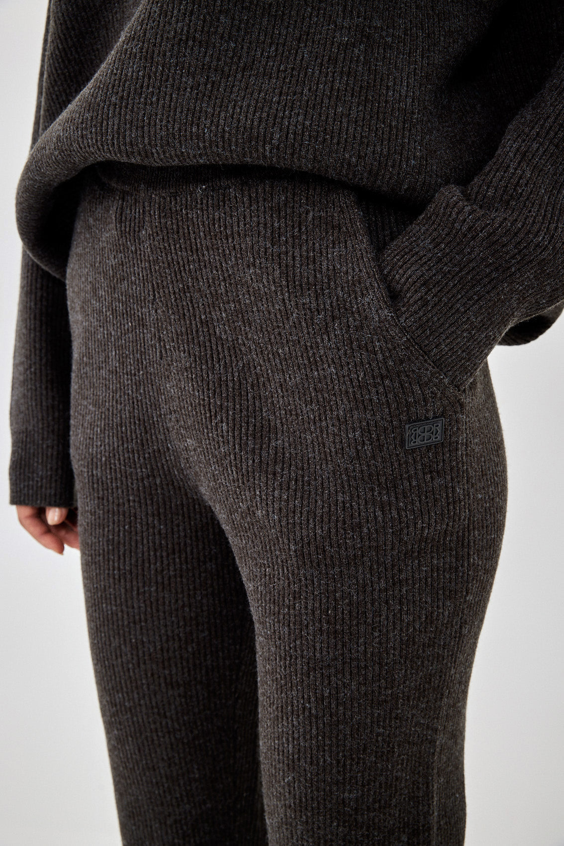 The comfiest jogger you'll own. Fully fashion ribbed knitted jogger, made from premium materials. Soft and cozy. Full length. Featuring two side pockets. Tone on tone silicone logo detailing under the side pocket. Elastic waistband with drawstring closure. Ribbed finish. Style it with your favorite matching top, the vegan leather trench and a pair of chunky boots for the perfect everyday look.