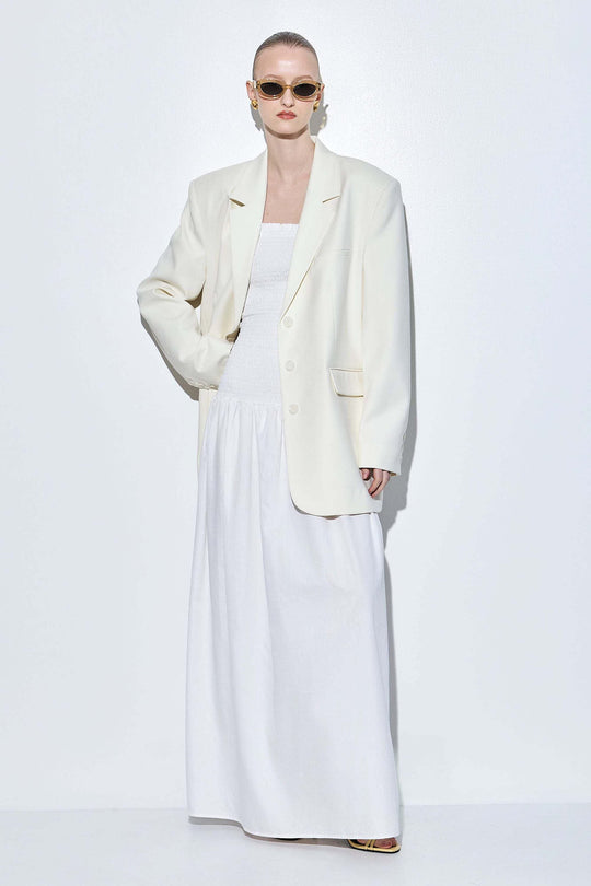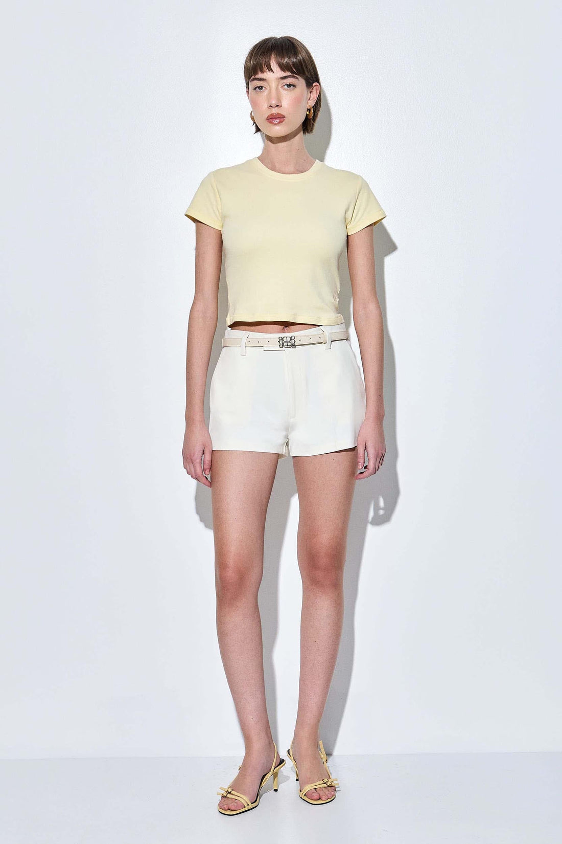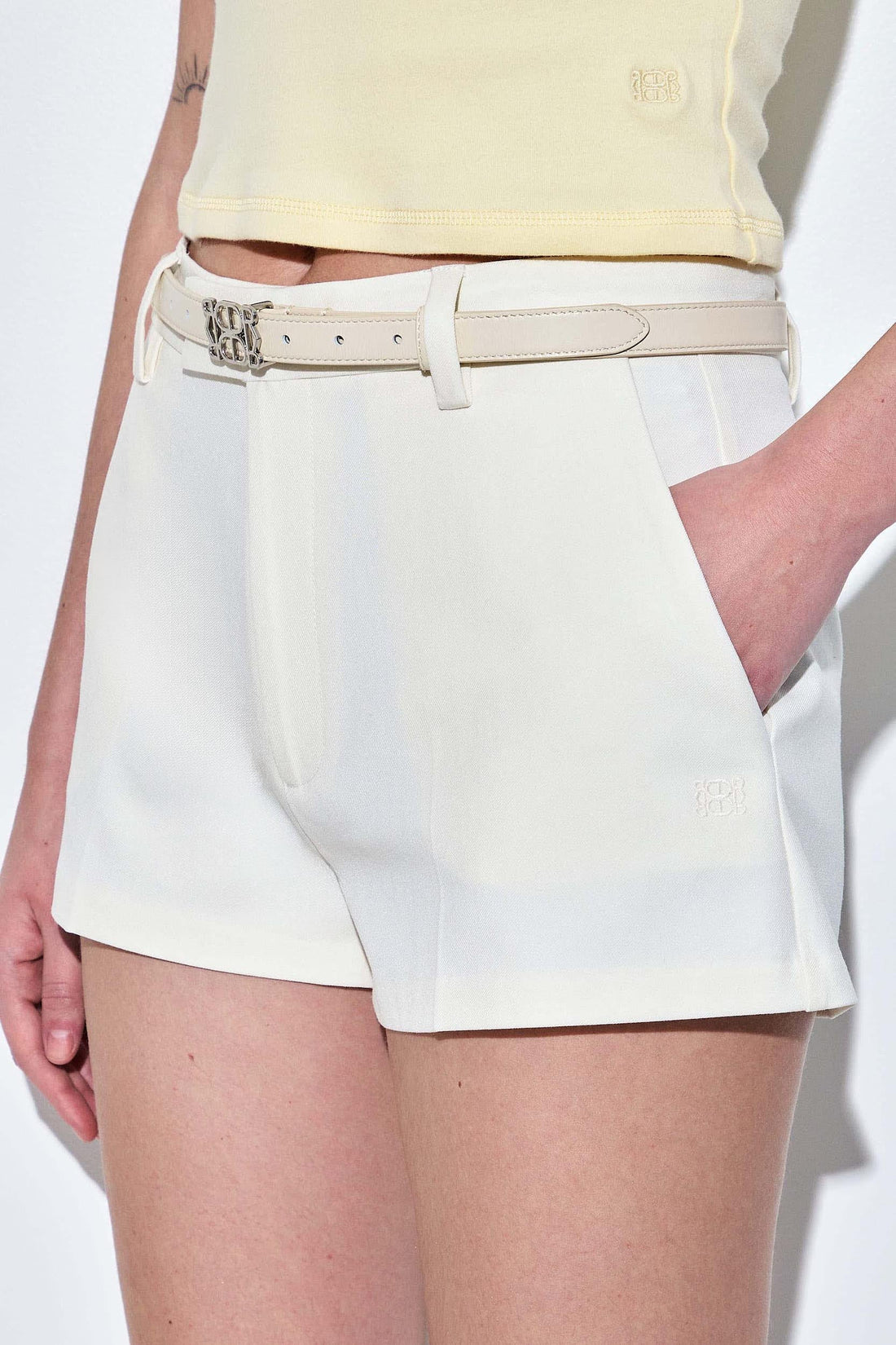 Our new tailored daddy shorts were designed to elevate any outfit this season. In a new luxurious tailored fabric. Mid waist. Belt loops. Unlined. Asymmetric belt closure with inner metal hook, button and zipper. Two side pockets. Two faux back pockets. Tonal embroidered logo on front side. Style it with our heavy cotton T-shirt, a pair of oval sunnies and throw our oversized daddy blazer on top to seal this gorgeous look.