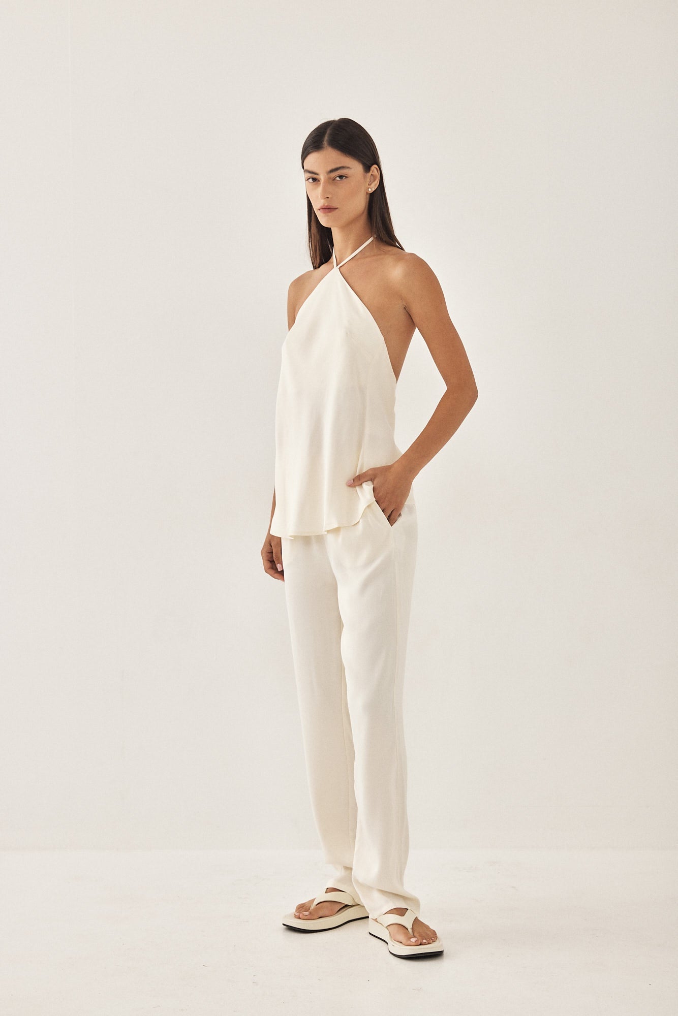Crossover delicate satin cami. Features a gorgeous open back. Lightweight breathable fabric. Cut in a special bias cut technique so that the materials falls smoothly and moves with your body. Your new go to summer evening top. Style it with your favorite pair of denim and some sunnies for an effortlessly cool look.