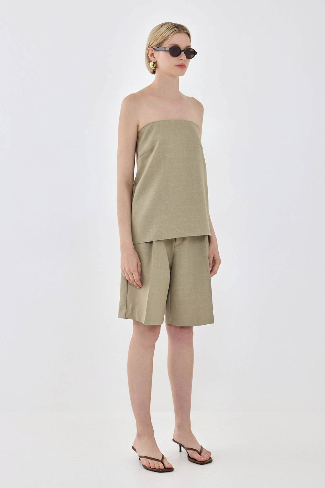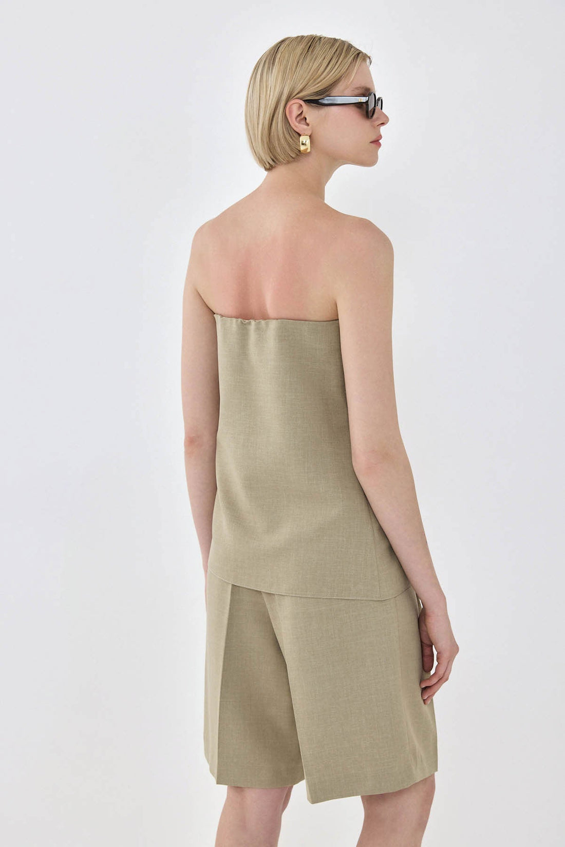 The most perfect strapless top in our signature daddy fabric. Featuring a silicon strap all around the top part of the fabric for extra support and grip. Ton sur ton invisible zipper closure on the side. Tonal embroidery logo detailing at the back. Style it with your favorite denim, Croco belt and some delicate accessories for an effortless day to night look.