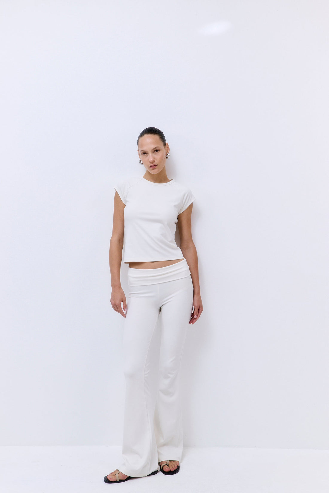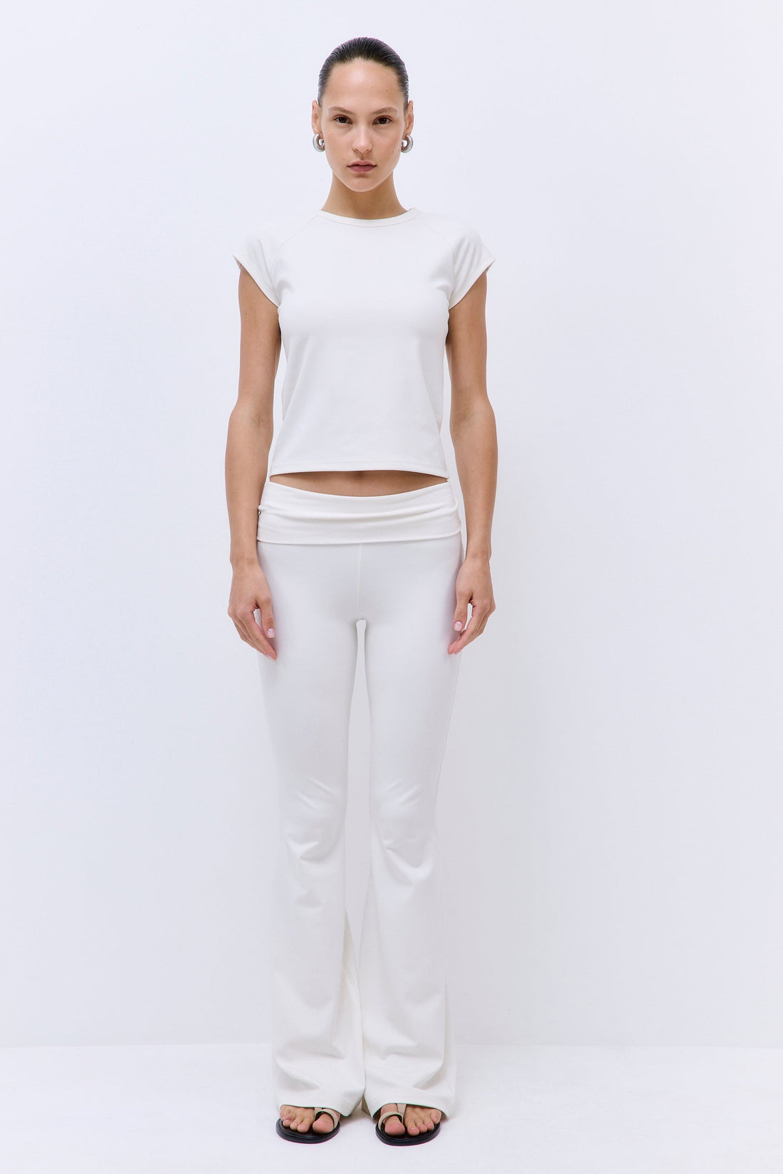 Our Lounge Flared Pants are the softest layer you’ll slip into. Crafted from buttery, body-hugging fabric. Fold-over adjustable waistband. Can be styled mid-rise or low-rise. Flared leg. Tonal logo embroidered on the back leg. Style it with our matching Lounge T Shirt and chic Double Breasted Cropped Trench Coat for ultimate comfort and an effortless vibe.