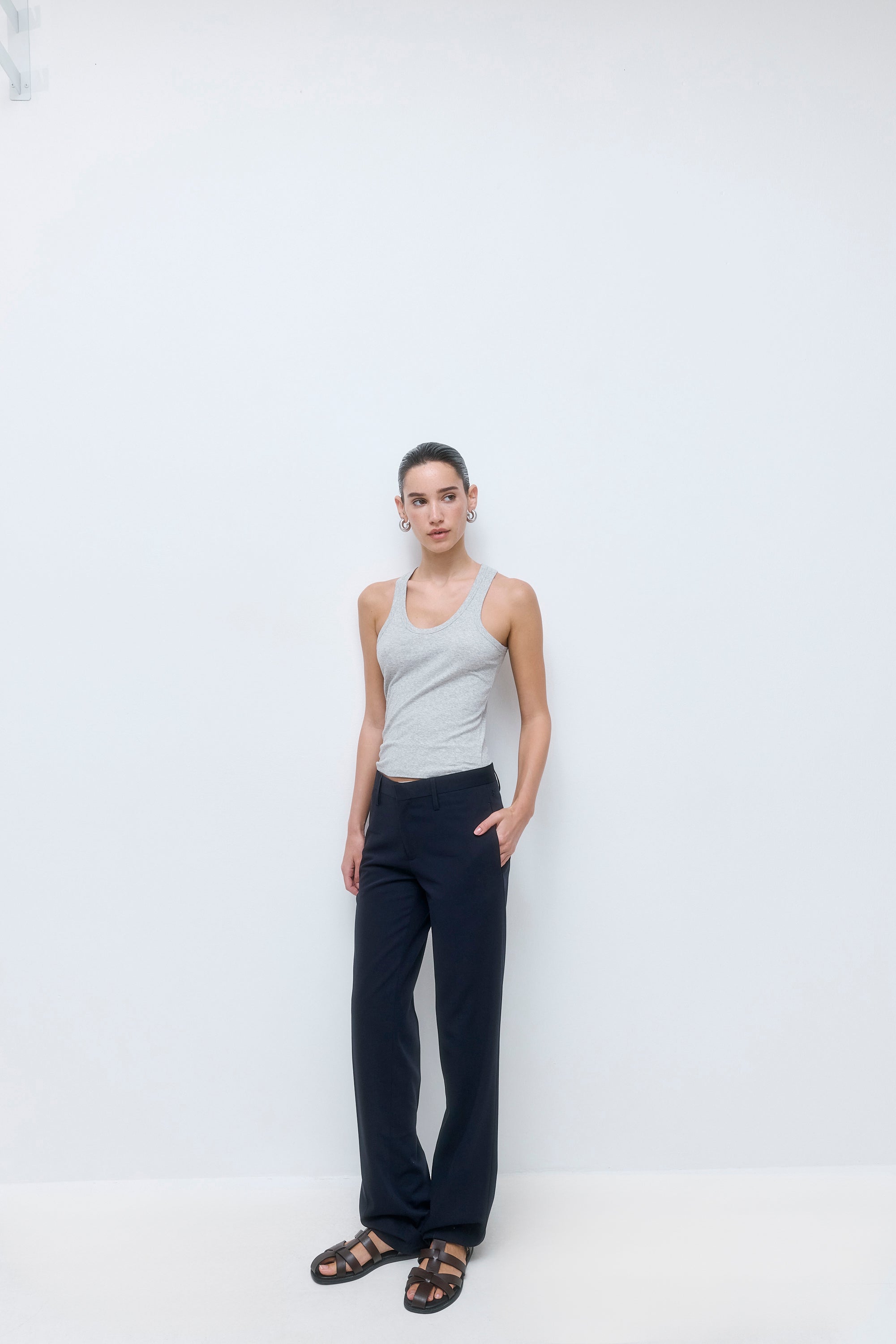 Welcoming new, timeless pieces to our iconic Daddy collection. The ultimate day-to-night pant. Mid waist, slim fit pants. Full length. Two side pockets. Zipper closure with inner hook. Half-lined. Tonal embroidered logo on the back. Includes back pockets featuring tonal buttons. Style it with our luscious Classic Long Sleeve T Shirt and our sleek new Double Breasted Daddy Blazer for a sophisticated, yet comfortable look.