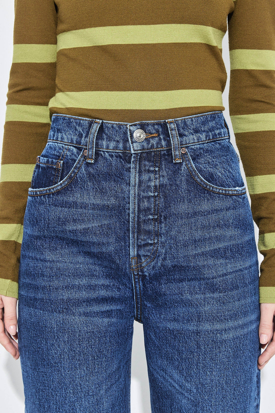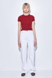 Our No.8 denim is a wide leg full length fit. The perfect addition to your wardrobe, a pair of denim that transcends seasonality. Front buttoned closure. Features a logo detail embroidered at the back pocket. Style yours with your favorite basic top and layer our cropped blazer over for a stylish and sophisticated look.