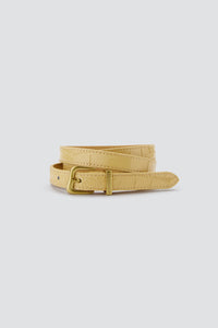 A classic narrow belt made from 100% genuine leather. 2 cm width. Croc design. Golden buckle made from zinc alloy. Featuring belt loop holes for convenient closure at your preferred length. Comes in a branded box along with a cotton dust bag to keep your accessories safe. The perfect addition to any wardrobe, adding timeless class to every look.