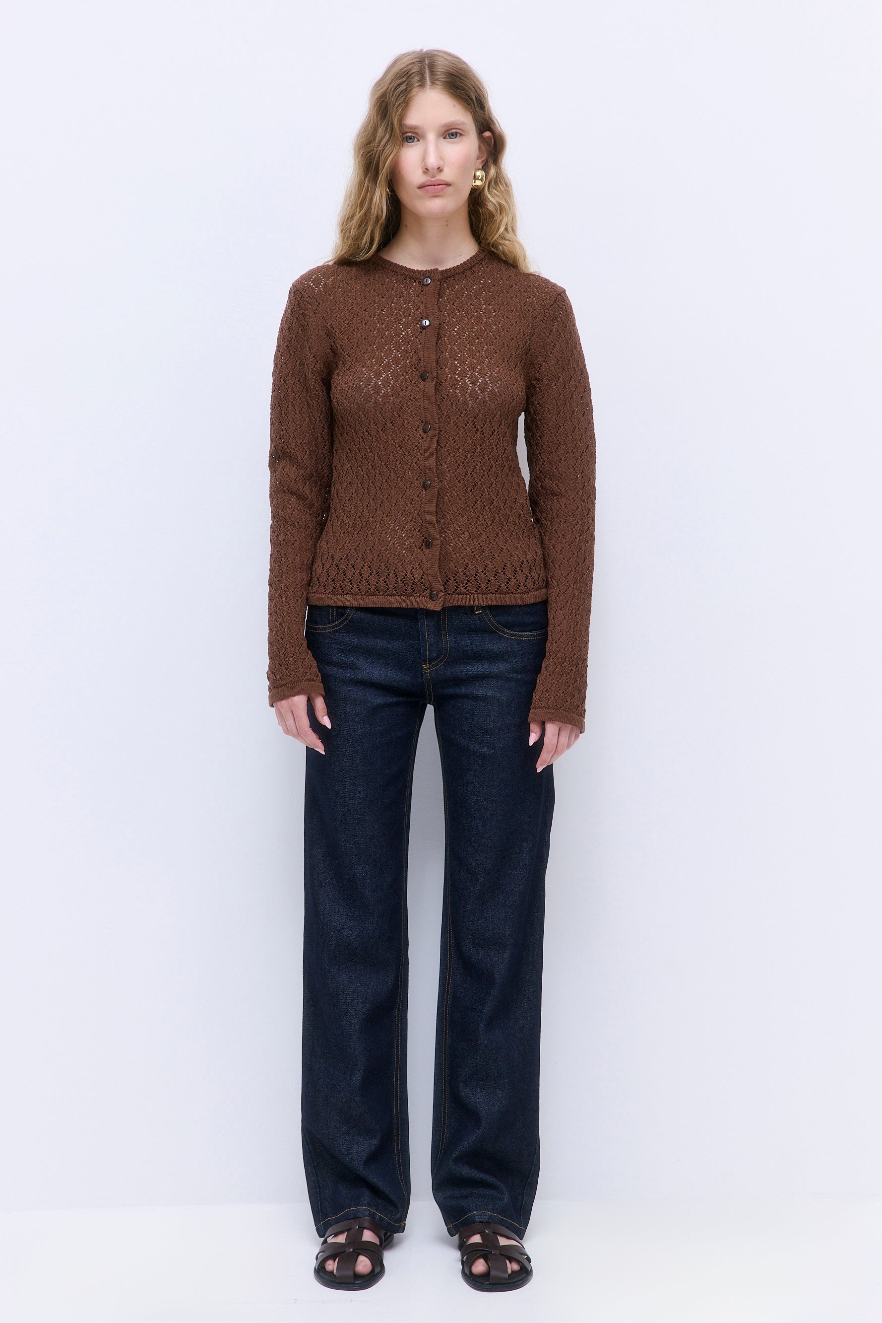 Our No.15 denim is a low-waist, straight denim that combines timeless design with a modern edge. Featuring a flattering silhouette that elongates the legs, it’s crafted for ultimate comfort and style. A classic buttoned closure. Logo leather patch detailing on the back. Style it with our crochet turtle neck top, our oval sunnies and and finish this gorgeous look with our flawless Yvon shoulder bag.