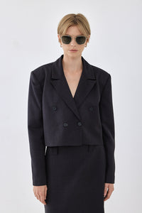 A new addition to our signature daddy collection. Cropped blazer. Features a lapel collar and front button closure. Long sleeves with pronounced shoulders. Dé Rococo embroidery ton sur ton at the back. Style it with a matching color daddy bottom for the ultimate stylish look.
