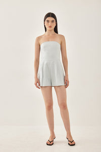 The ultimate strapless tailored jumpsuit. Featuring a straight neckline with a silicone strap for a better grip. Hidden zip closure. Embroidered logo at the back. The most flattering silhouette, simply slip it on and you are ready to go. Style it with delicate slides and some accessories for a perfect day to night look.