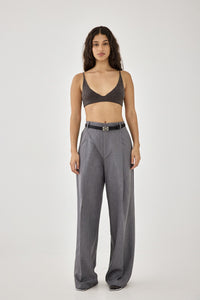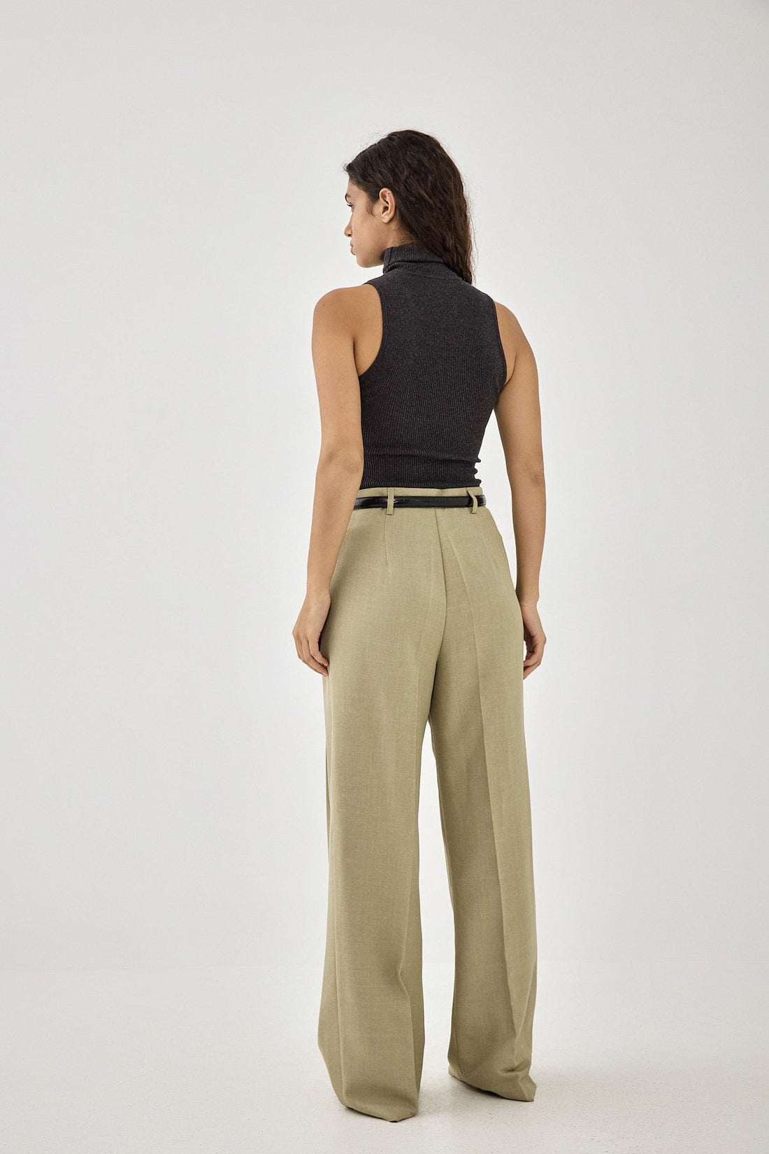 High waisted tailored pants with an extra wide silhouette. Non-stretch lightweight woven fabric. Featuring belt loops. Front zip and metal hook closure. Embroidered logo detailing at the back. Two side pockets. Style it with your favorite basic tee and a pair of sandals for an ultra-chic everyday look.