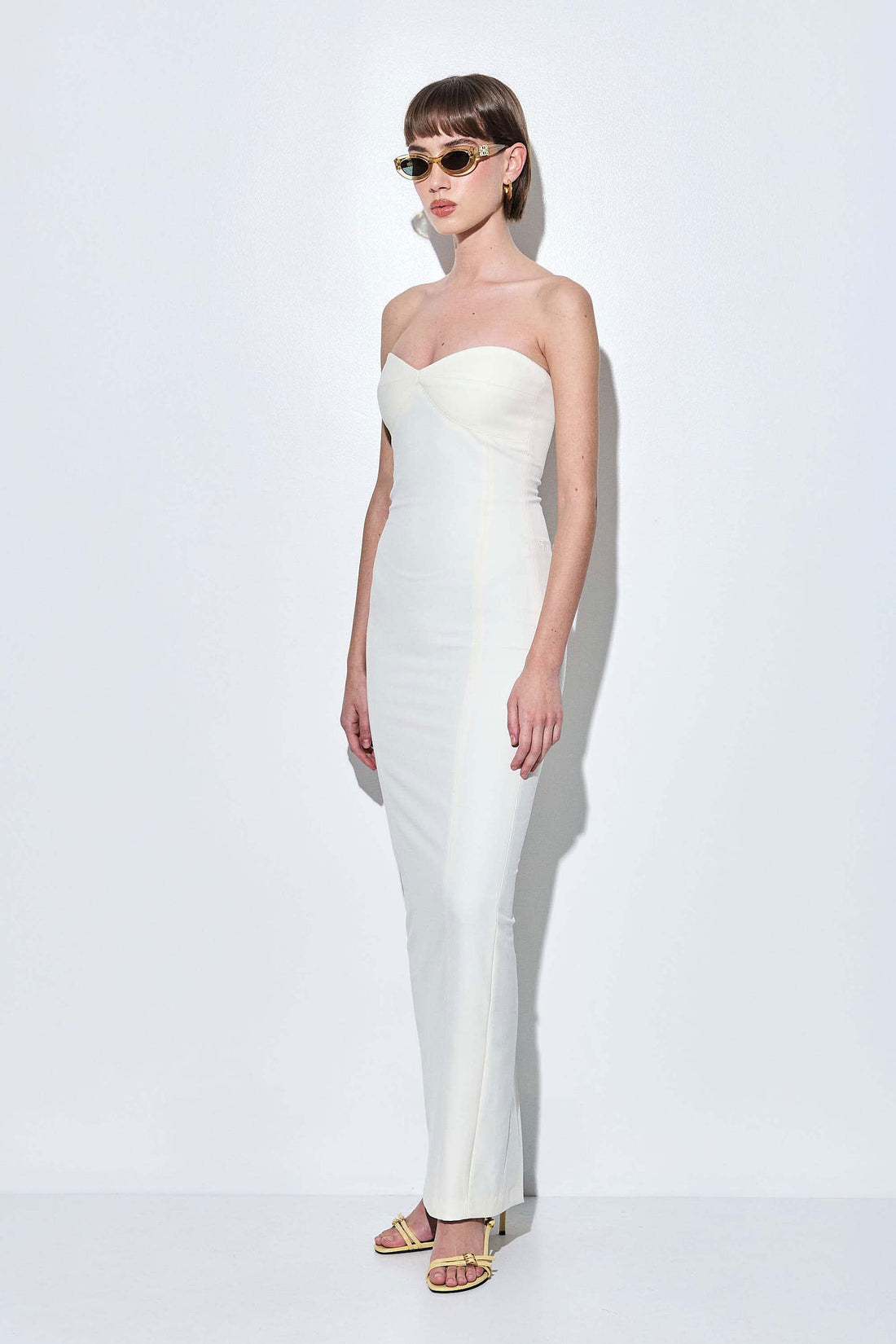 The most perfect black dress in a new luxurious tailored fabric. Our tailored corset strapless maxi dress is a true essential for any occasion. Full length. Delicate back zipper closure with metal hook. Internal silicone grip and double layered corset for extra support. Back slit. Fitted silhouette. Style it with our oval sunglasses and throw our tailored daddy blazer on top for an unforgettable classy look.