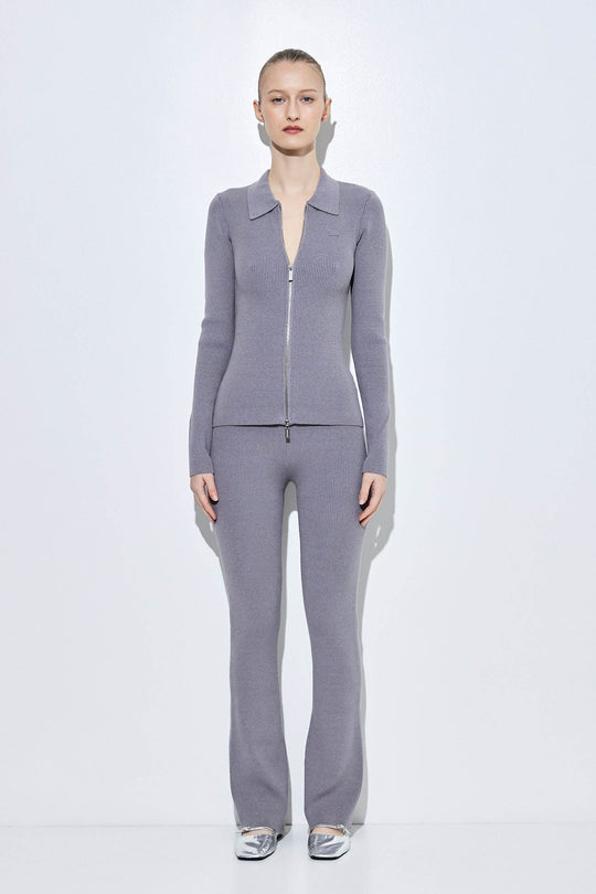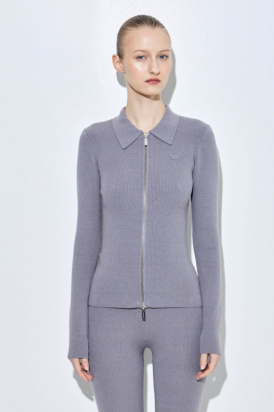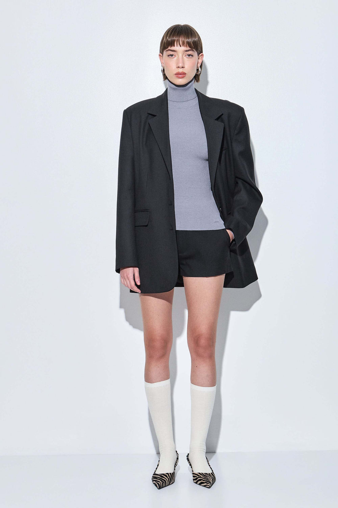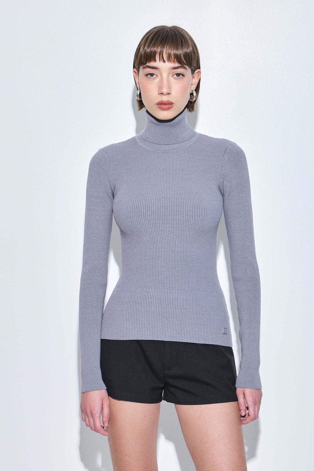 Our new ribbed turtleneck top is the ultimate piece to own this season. Long sleeves. Fitted silhouette. Tonal silicone patch embossed logo. Stretchy fabric that hugs the body. Clean finish. Style it with our matching ribbed flare leggings, throw our vegan leather jacket on top and our monogram signature scarf to seal this effortless look.