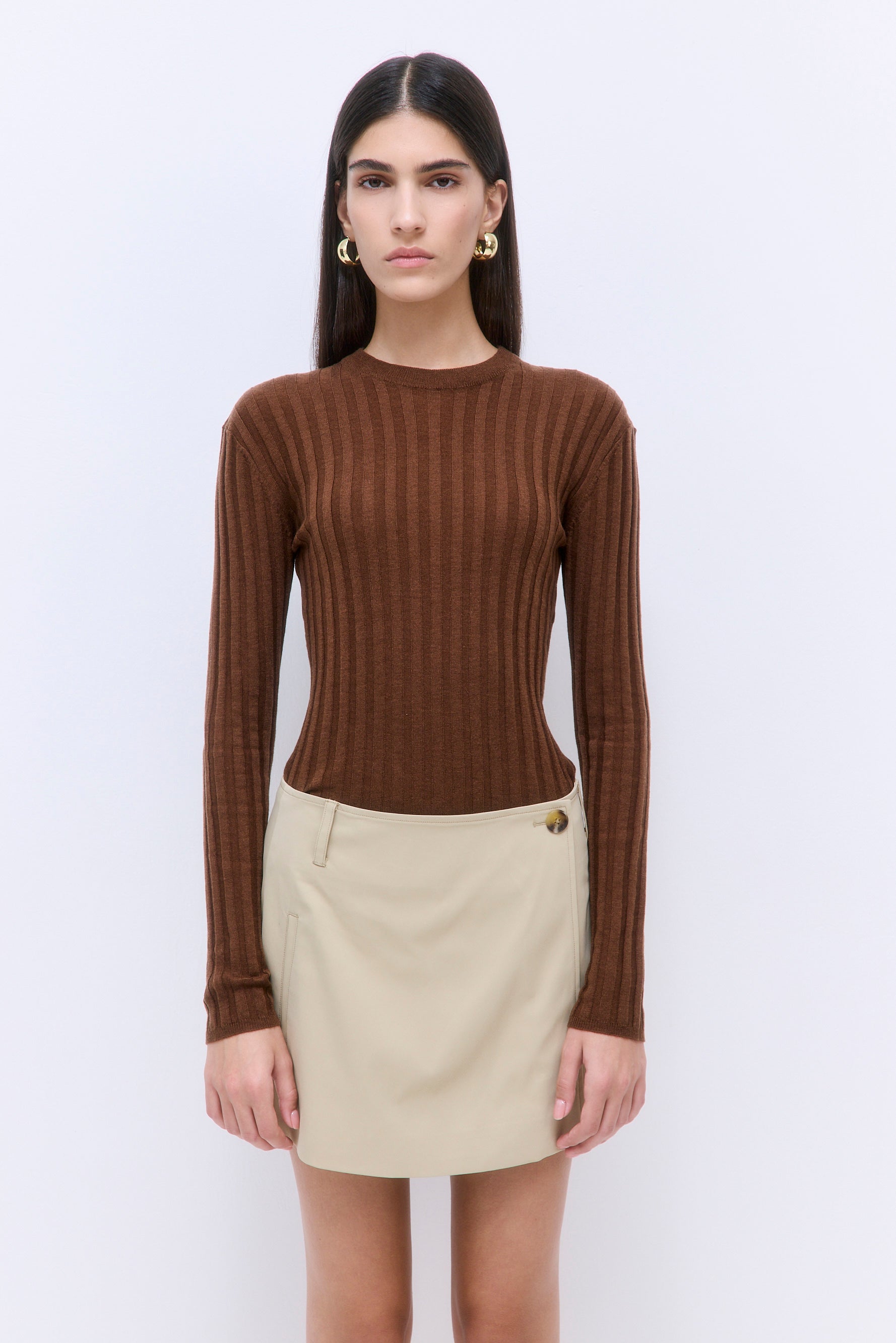 The ultimate transition piece, from summer to fall. Crew neck. Wide rib knit. Fitted silhouette. Fully fashioned. Tonal silicon logo on the back. Style it with our iconic No. 15 Denim and timeless Oval Sunglasses for a simple, yet sleek look.