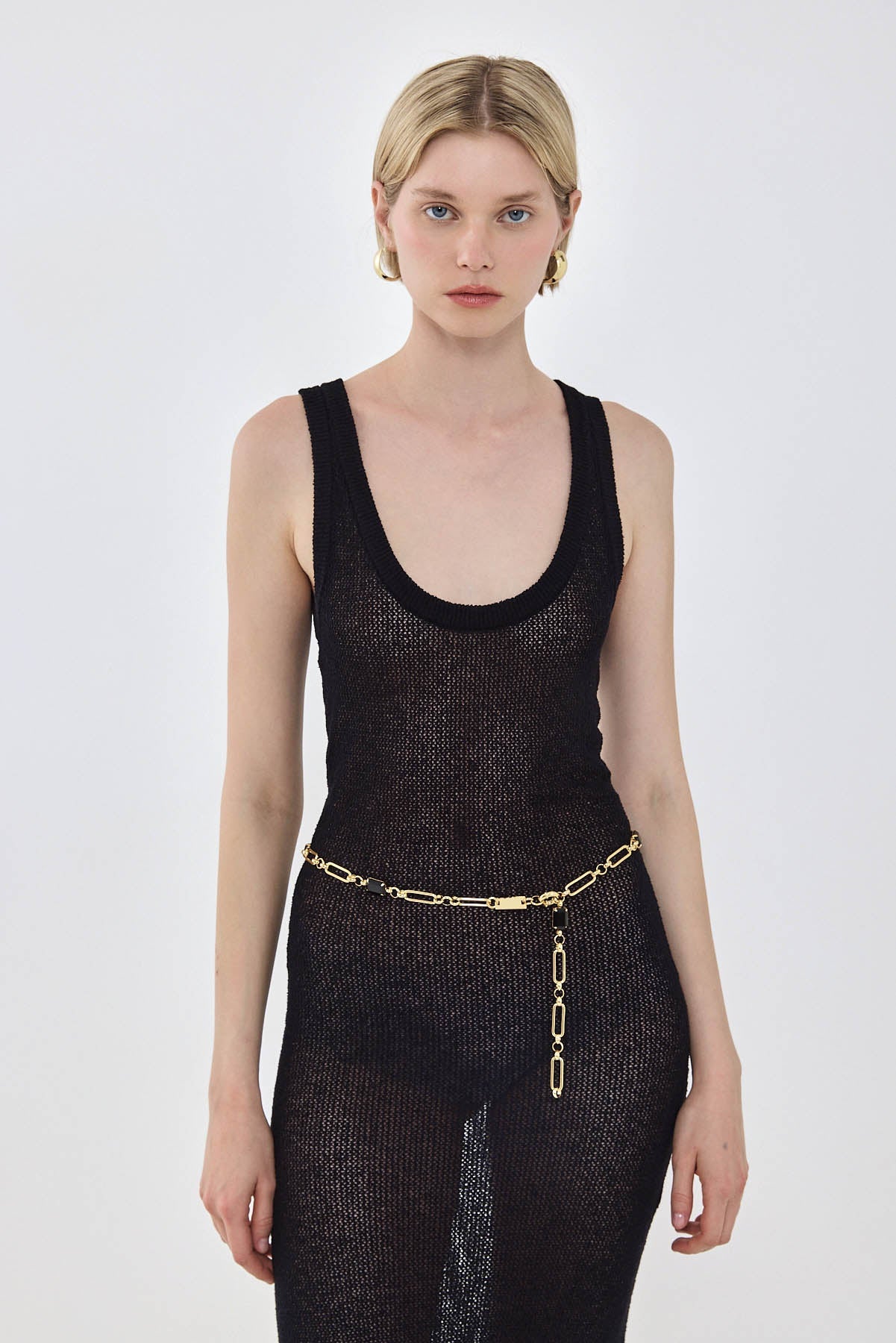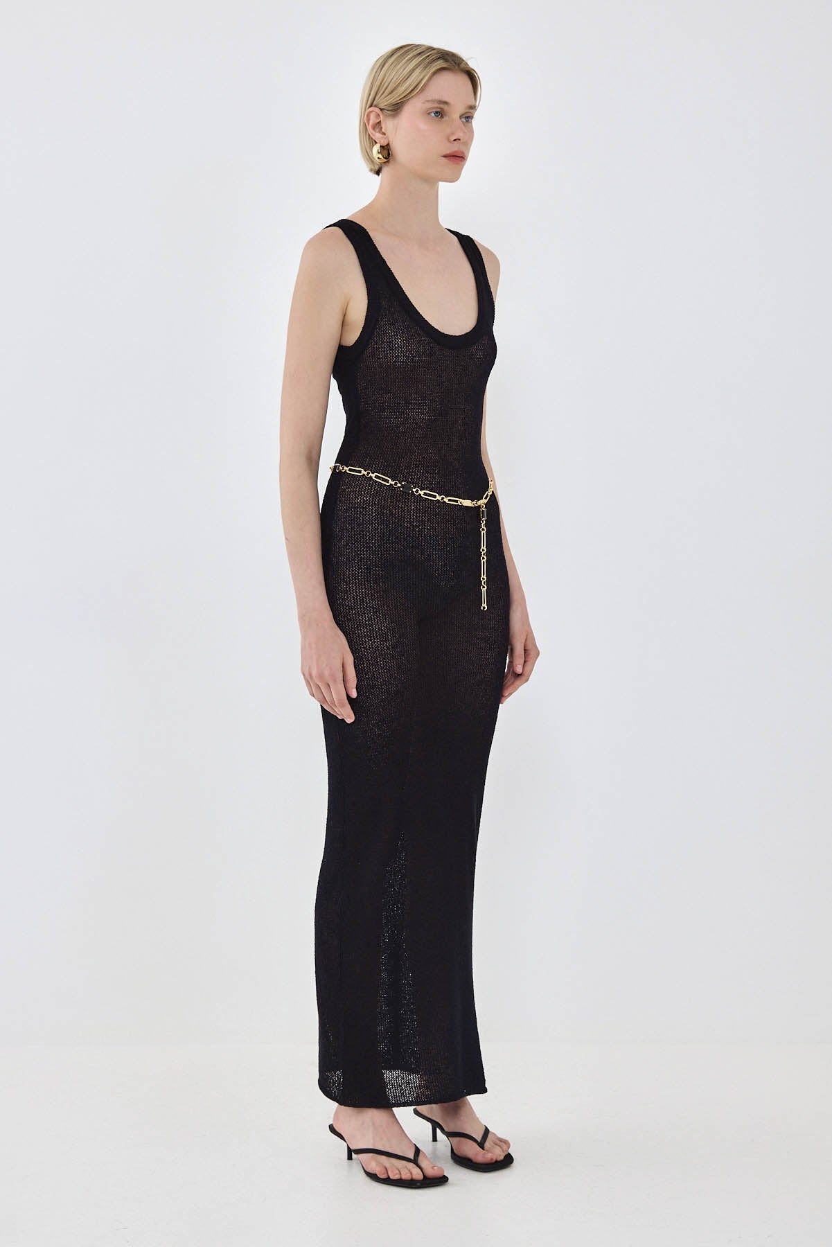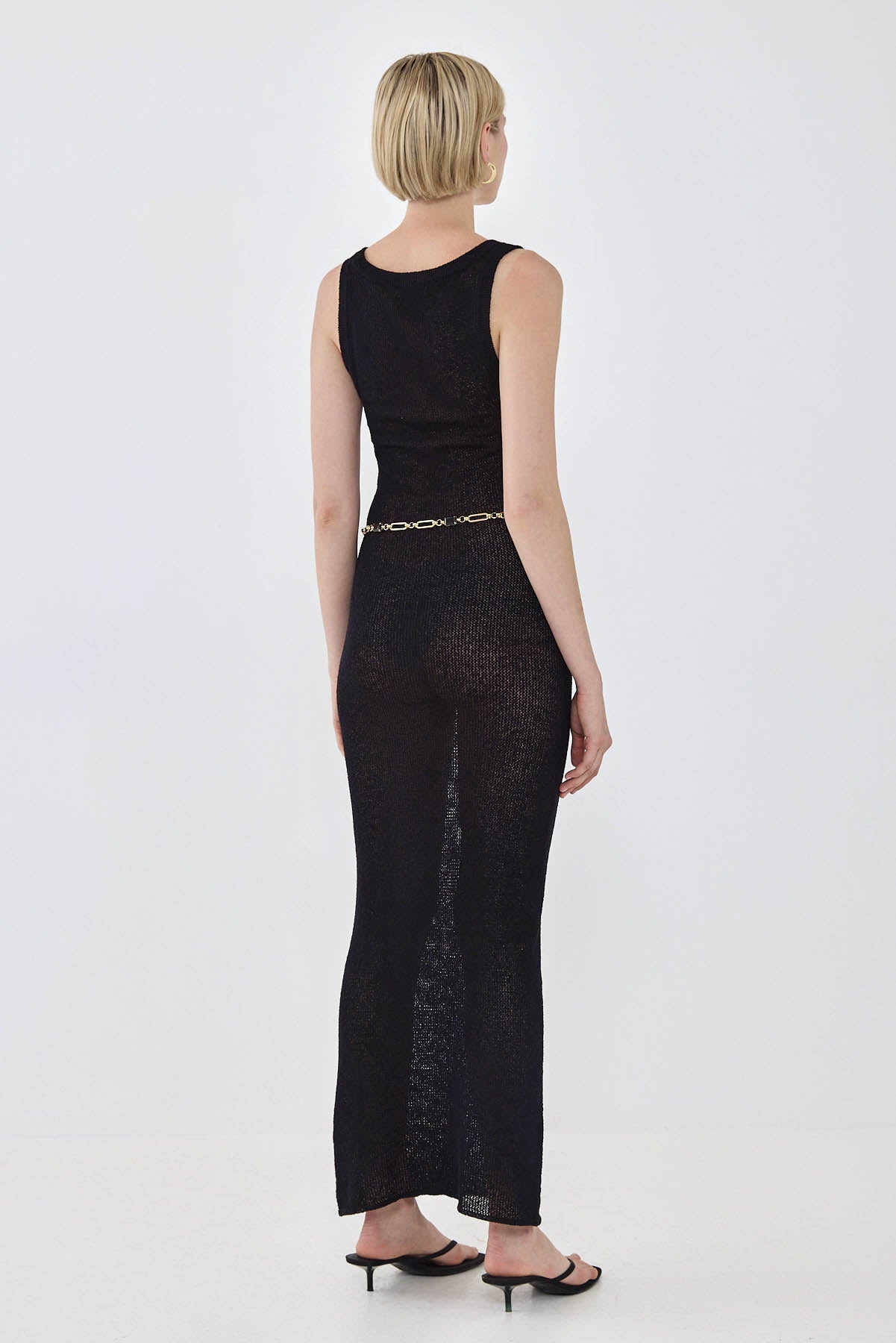 Deep scooped crochet maxi dress. Material that hugs the body, ultra flattering. Round neck cleavage. Sleeveless. Ribbed finish. Full length. The simplest and chicest way to elevate your summer look. Simply throw on the crochet maxi dress over your favorite swim set, add a pair of slides and sunnies and you are beach ready. Store your crochet garments flat or folded. Hanging them can cause the fibers to stretch and the item to go out of shape.