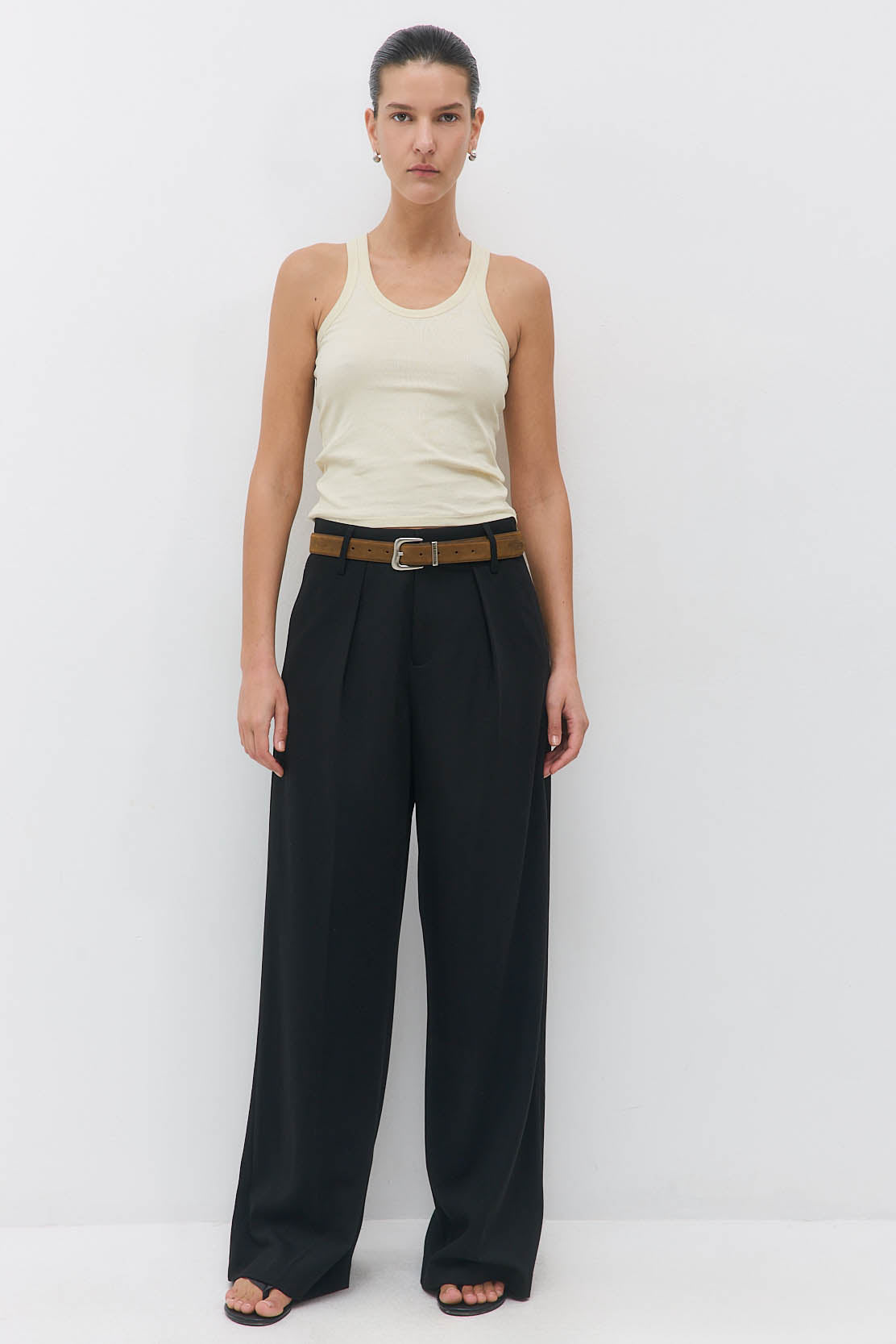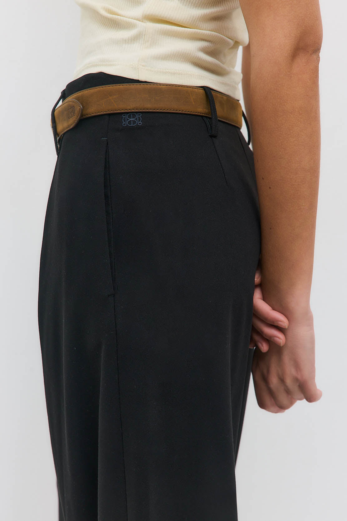 Welcoming new, timeless pieces to our iconic Daddy collection. A winter essential made to elevate every look. Waistband featuring an inner belt structure for a refined, tailored fit. Full length. Mid waisted. Front pleat. Side pockets. Clean finishes. Wide leg. Delicate belt loops. Tonal logo embroidery at the side back. Style it with our effortless Sheer Baby Tee and iconic Rodika Tote Bag for an elevated look.