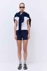 Our Lounge Shorts are the softest layer you’ll slip into. Crafted from buttery, body-hugging fabric. Fold-over adjustable waistband. Can be styled mid-rise or low-rise. Tonal logo embroidered on the front side. Style it with our matching Lounge T Shirt and chic Double Breasted Cropped Trench Coat for ultimate comfort and an effortless vibe.